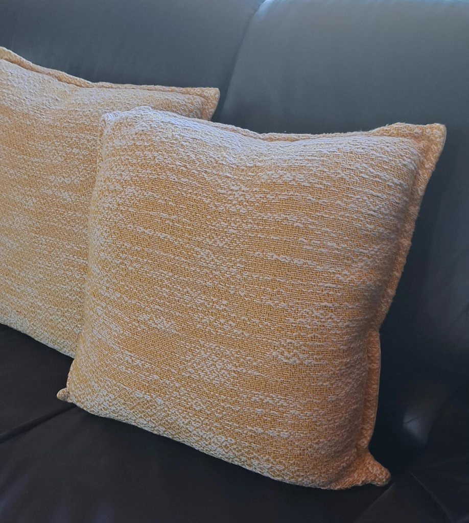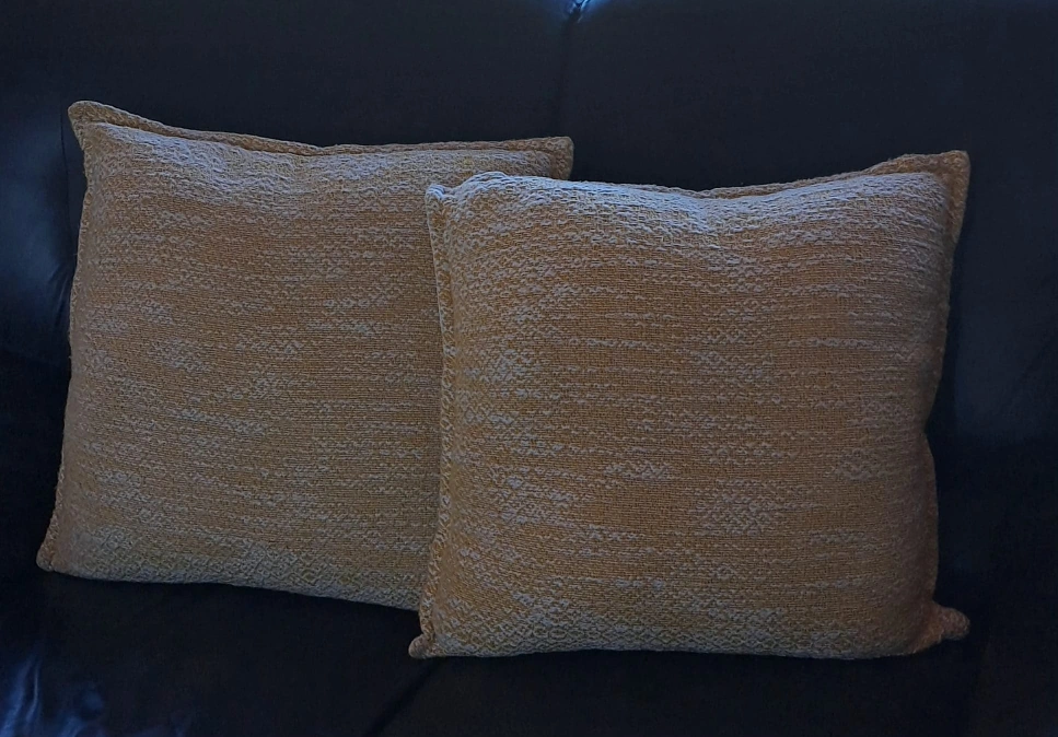 20Selling a set of two decorative throw pillows. They're in great shape and ready to add a pop of colour to your living space! The pillows have a textured, woven look.