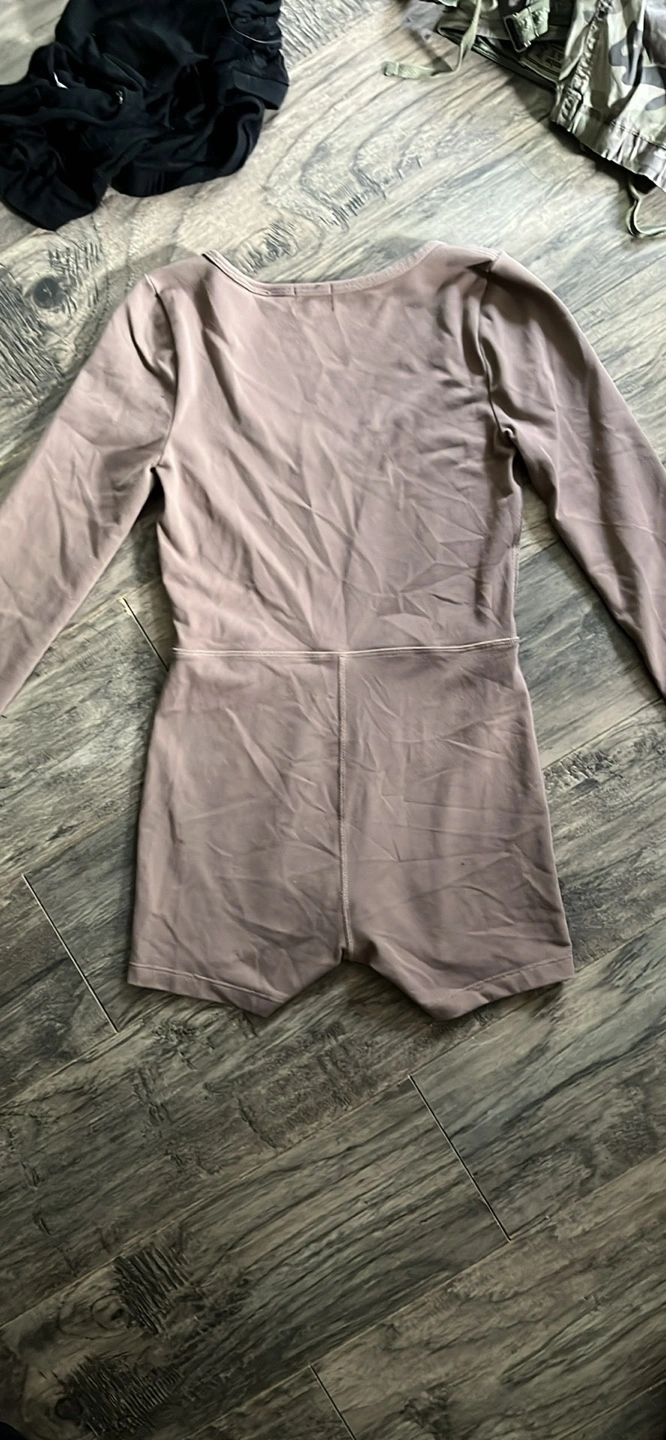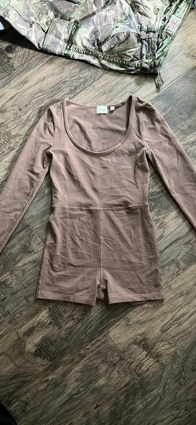 Selling a Wilfred Free romper in size small. It's a lovely neutral colour and perfect for warmer weather or layering! There’s no damage, staining, or wearing out on the romper at all. The material is soft and comfortable, making it great for everyday wear. Comes from a smoke free and pet free home