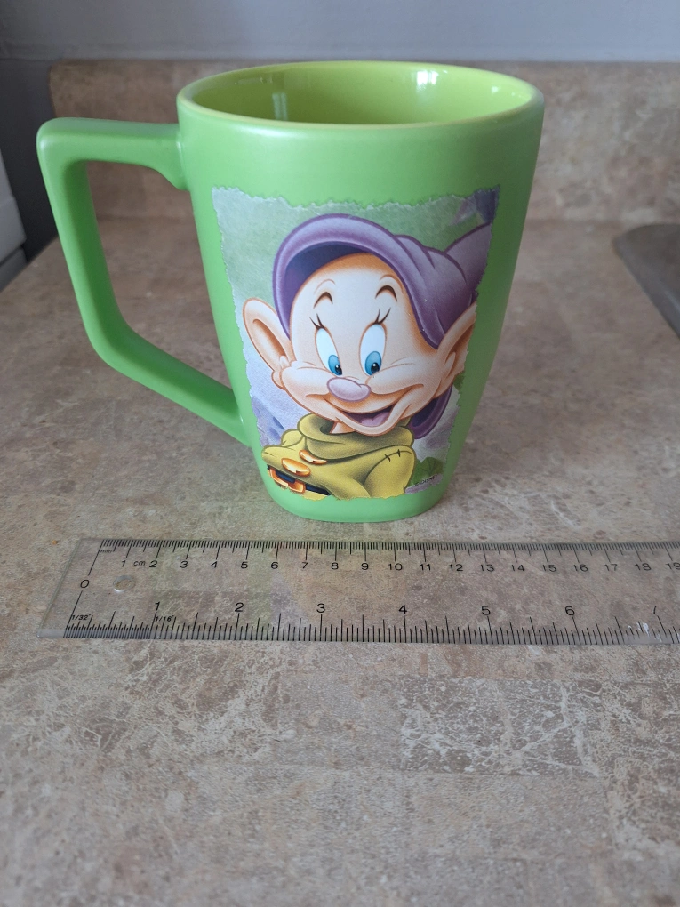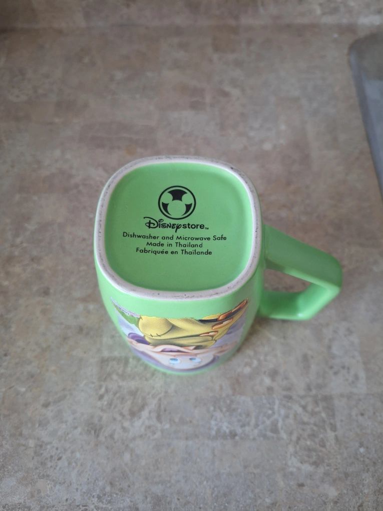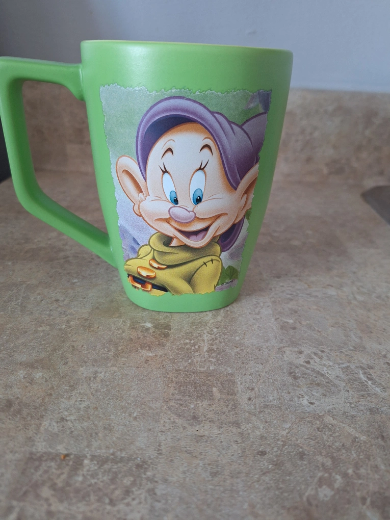 Here's a cute large green mug from the Disney Store featuring Dopey from Snow White! It's dishwasher and microwave safe.