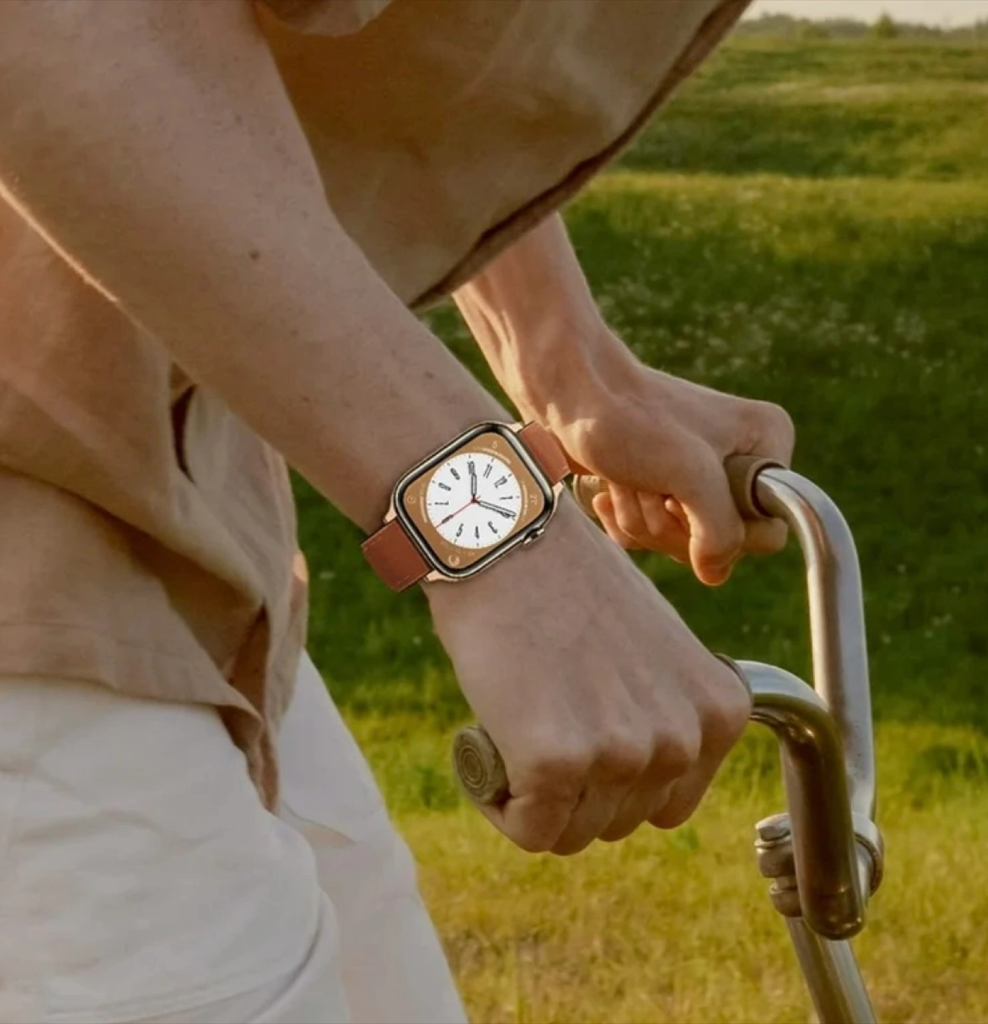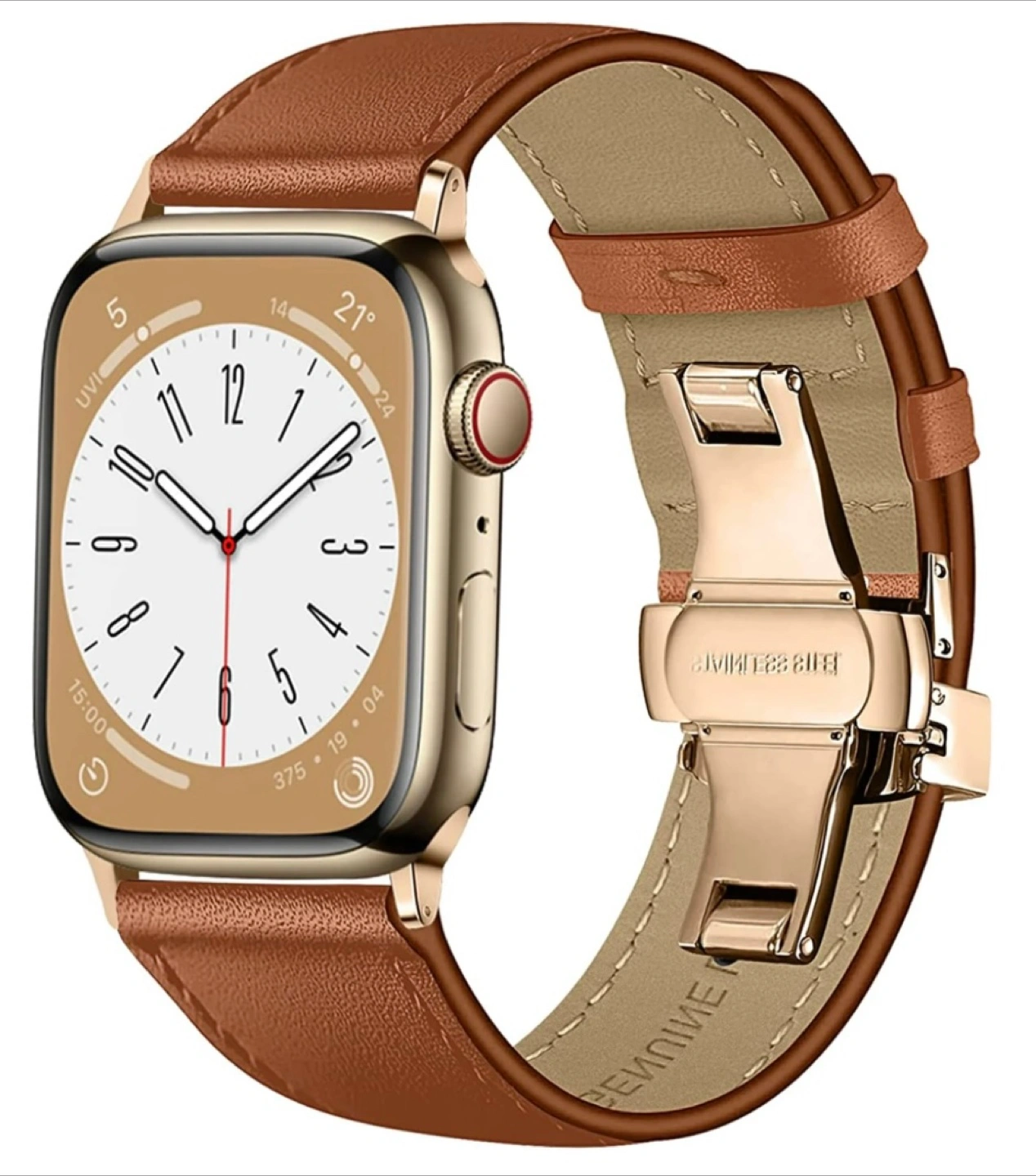 Looking to add a touch of class to your Apple Watch? This brown leather band with a gold clasp is just the ticket! It fits Apple Watch SE & Series 8/Ultra/7/6/5/4/3, accommodating wrist sizes from 5.5 to 7.87 inches (140mm-200mm). The upgraded metal connectors easily slide in and securely lock for a comfortable and stylish fit, Leather Apple Watch Band 44mm 45mm 49mm 42mm for Women Men,