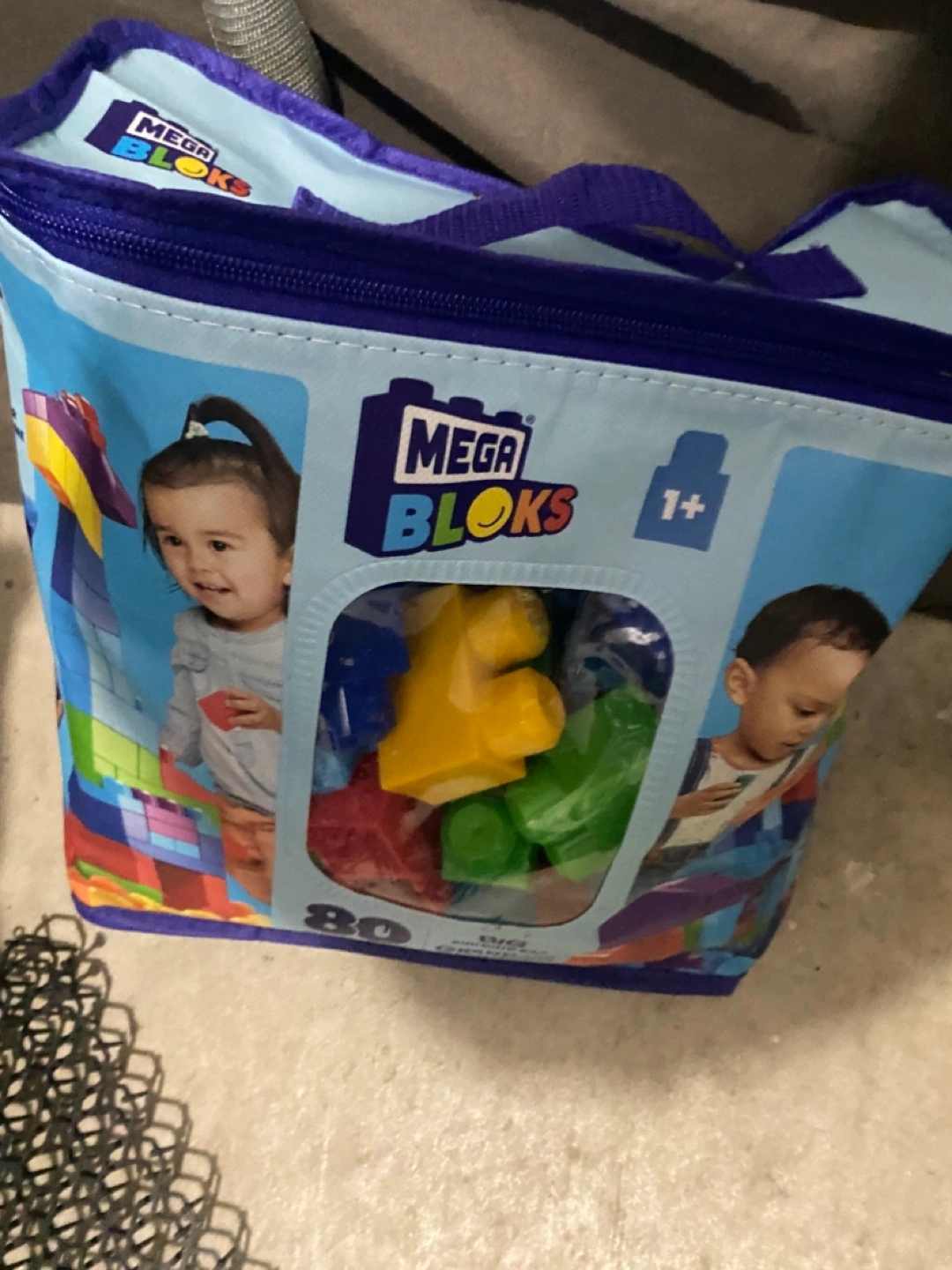 88Selling a Mega Bloks set It's perfect for little ones aged 1 and up. The blocks are in a variety of colours and come in a handy storage bag.