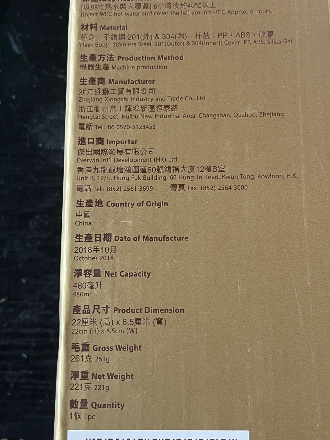- Double-walled stainless steel thermal flask insulated to keep beverages hot or cold for hours