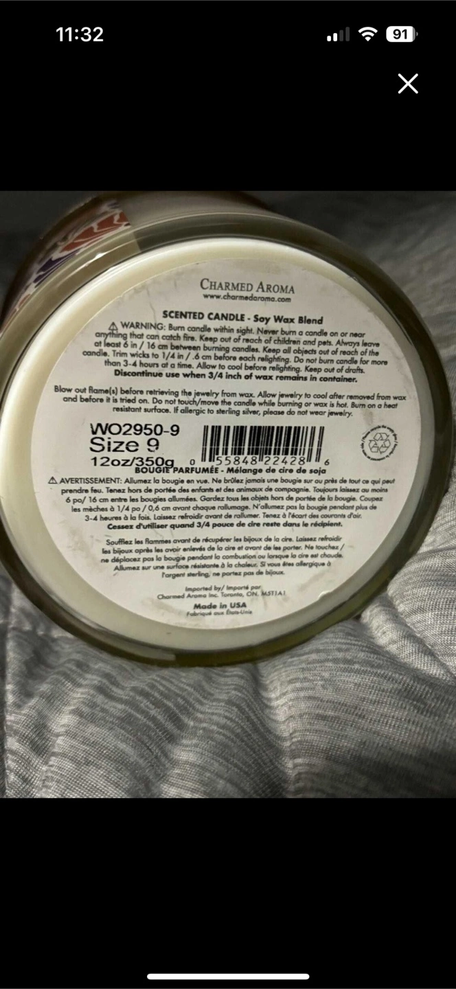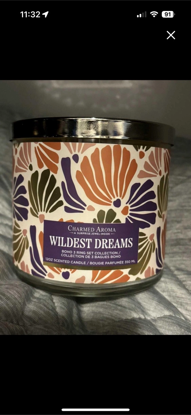 Selling a Charmed Aroma Wildest Dreams candle. It's a 12oz scented candle, and it contains a surprise jewel inside! Ring is size 9
