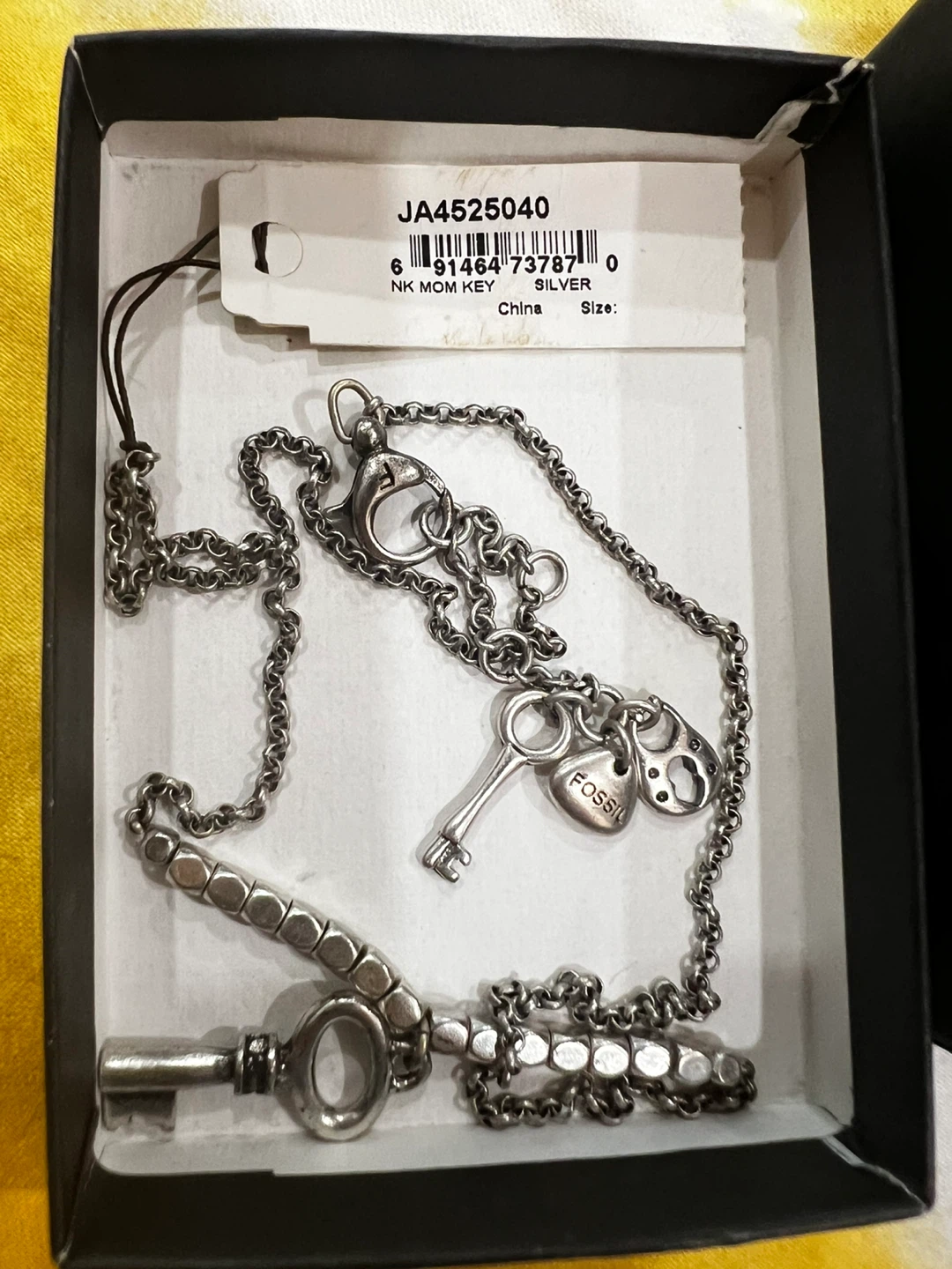 Selling a brand new Fossil Key Necklace! It's still in its original box and has the tag attached. The necklace is silver in colour and features a 'mom key' design. Super cute and stylish!