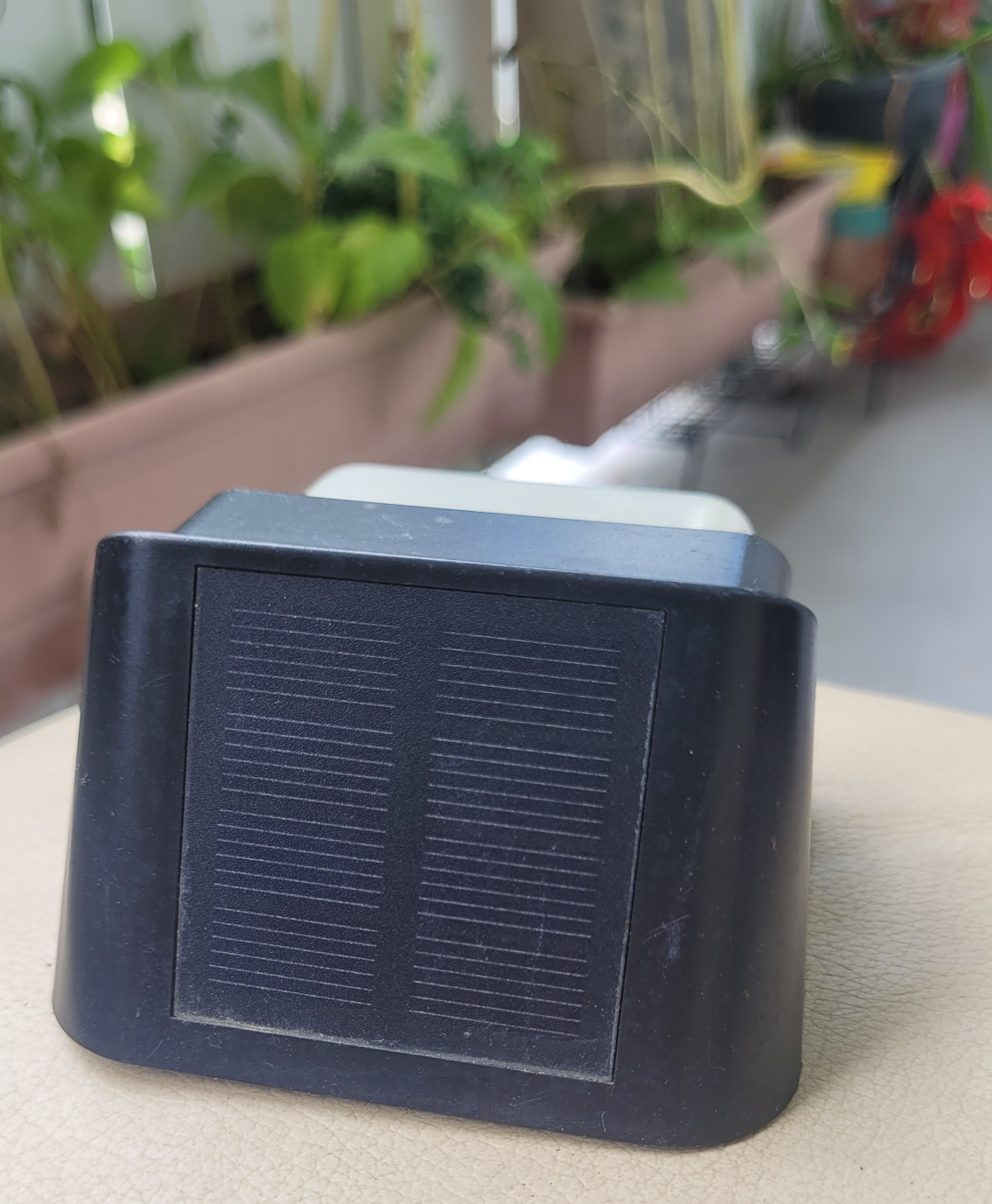 Here’s a handy solar-powered LED light! It's perfect for adding a little light to your outdoor spaces. It charges with solar power, so no need for batteries or plugs