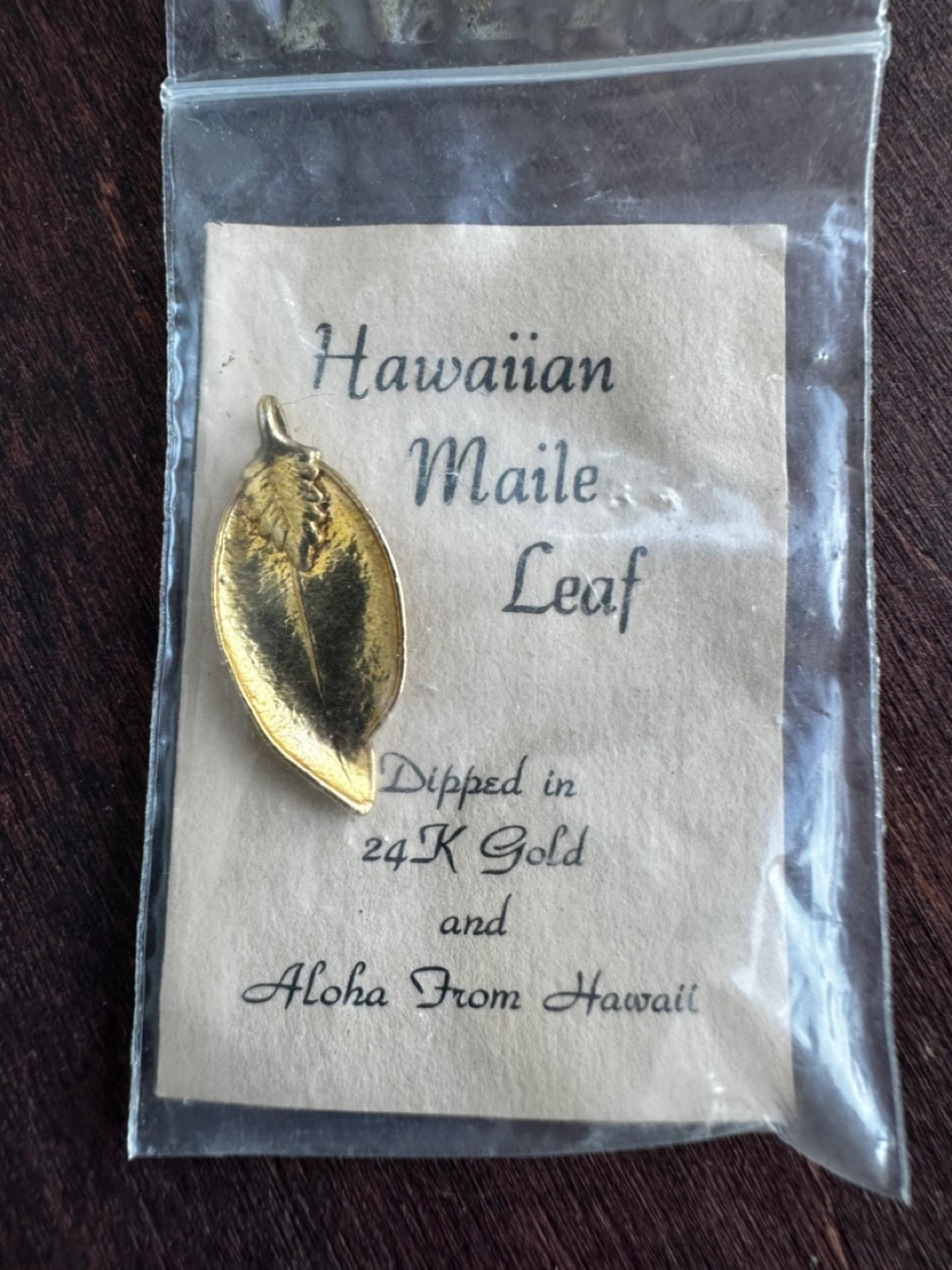 This is a beautiful Hawaiian Maile Leaf dipped in 24K gold. It comes in its original packaging, ready to bring a touch of Aloha from Hawaii to your home or as a thoughtful gift. Real leaf.
