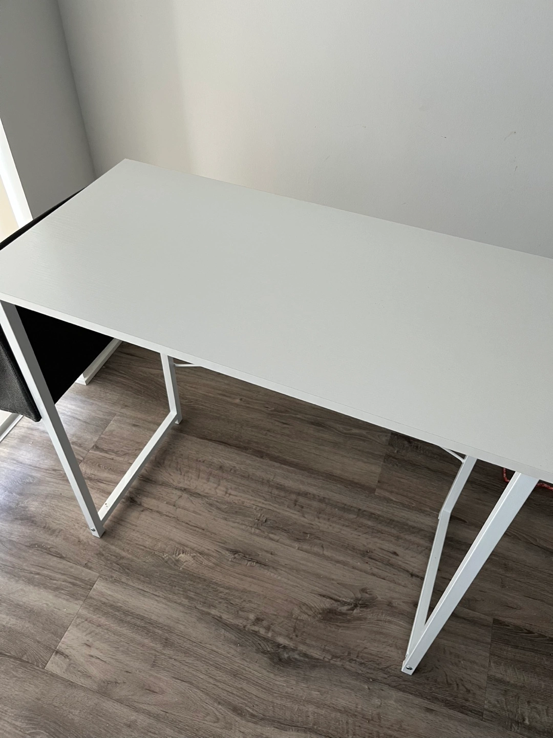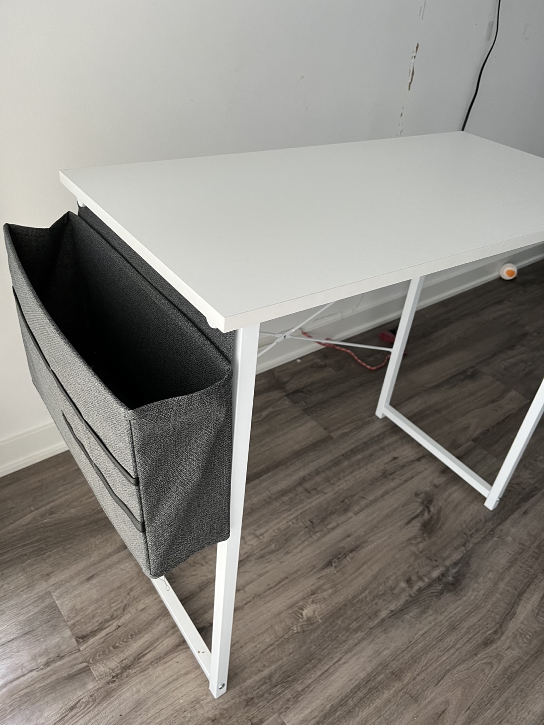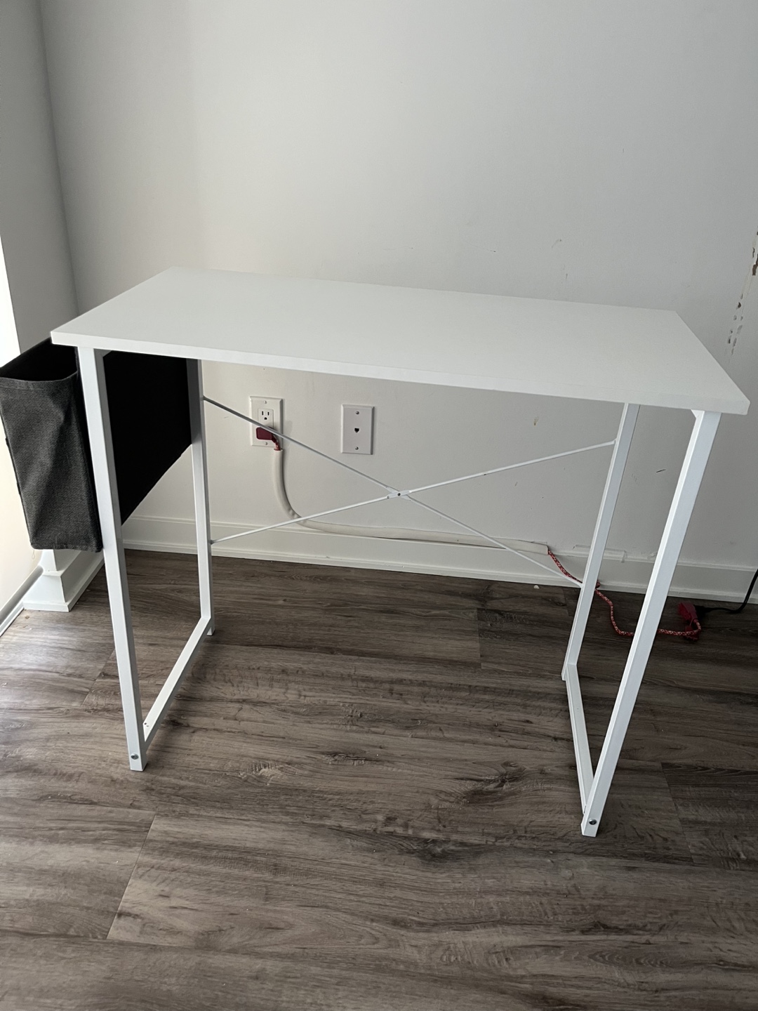 Selling a simple white desk that’s perfect for a home office or study space! It comes with a handy grey side pocket for storing books or papers. The desk is in perfect shape and ready for a new home.