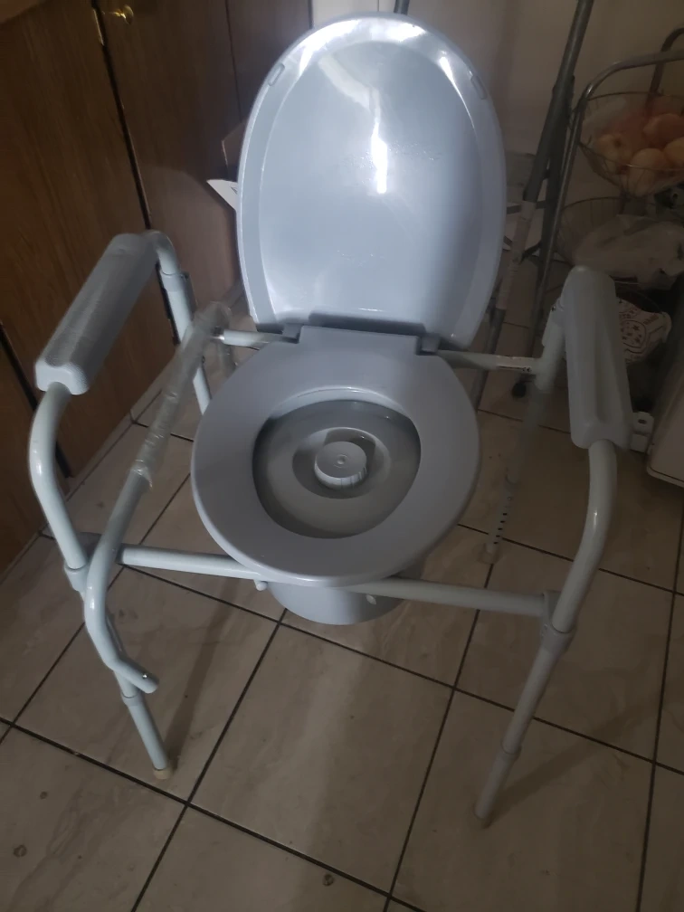 Selling a commode chair. It appears to be in good condition and ready for use. Perfect for anyone needing a portable toilet solution!