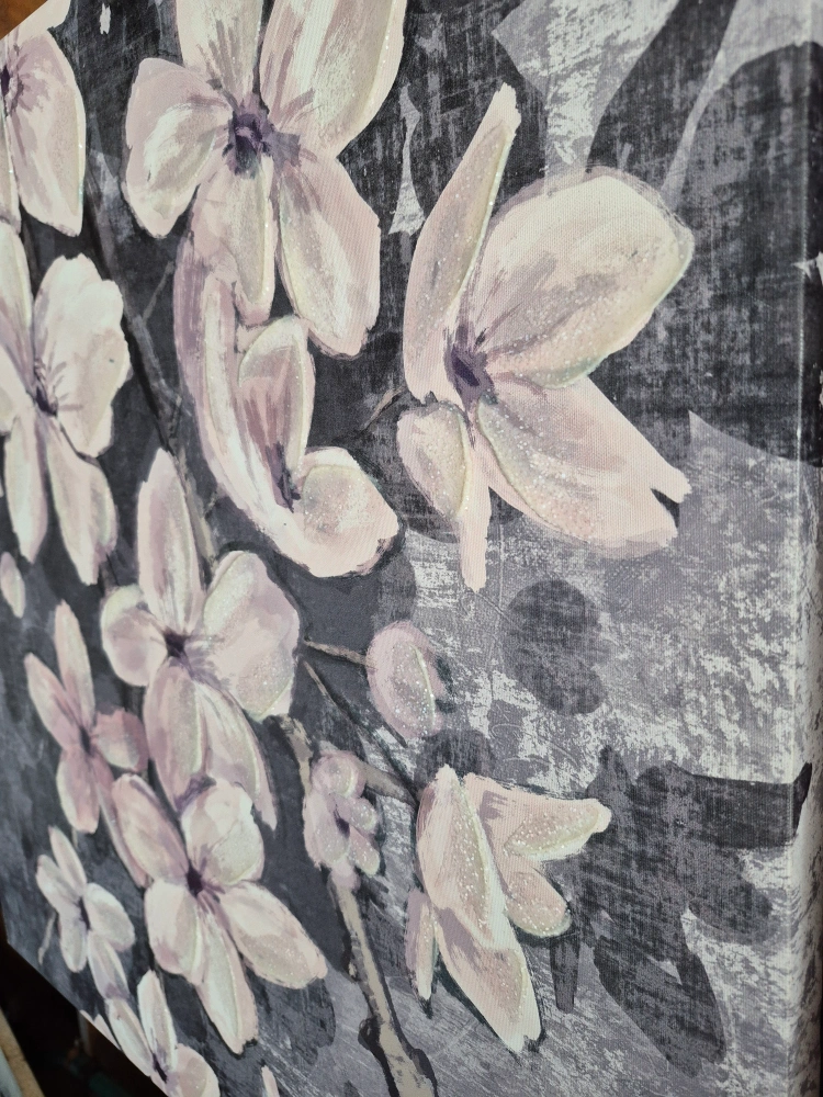 Selling a lovely floral canvas wall art piece. It's in great condition and ready to brighten up any room in your home. The neutral colours would fit in with many different decor styles! Measures about 27 by 27 inches.