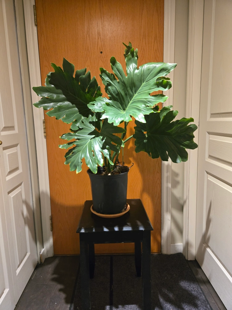 Selling a healthy split-leaf philodendron plant in a black plastic pot. It's a beautiful houseplant that's easy to care for and adds a touch of green to any room