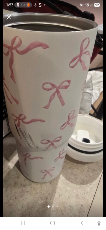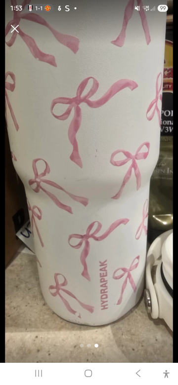 Hydrapeak tumbler, perfect for keeping your drinks hot or cold! It has a cute design with pink bows all over. There are some signs of use, as shown in the pictures, but it's still in good working condition and ready for a new home
