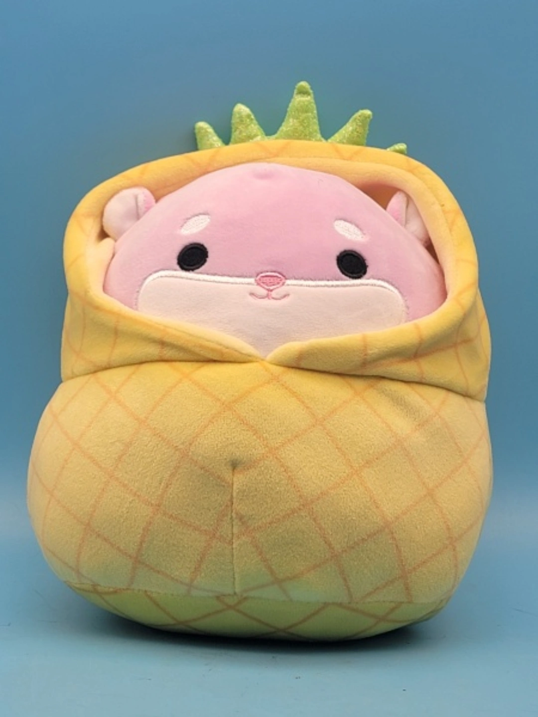 Get ready to add a adorable and cuddly friend to your collection with the Squishmallows brand Megan Hamster in Pineapple Claire's Exclusive. This stuffed animal is perfect for kids and adults alike who love to collect and snuggle with their favorite Squishmallow. Made with high-quality materials, this Squishmallow is soft and squishy, making it perfect for hugging and snuggling. The pineapple design adds a fun and unique touch to the toy, making it a great addition to any collection. Don't miss out on the chance to add this exclusive Squishmallow to your collection. It features a pink hamster snuggled inside a yellow pineapple costume. It's in great condition and ready for a new home Please look closely at the attached photos to go along with the description and the condition of the item. Willing to ship at the Buyers expense. Please see my many other listings. Thank you for looking. Have a Happy Day! 🙂