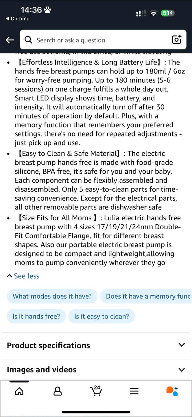 This hands-free breast pump features:
