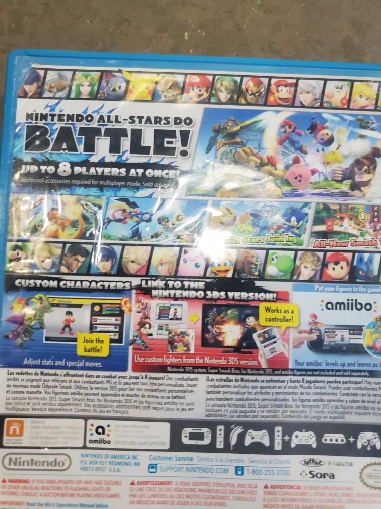 Selling Super Smash Bros for Wii U! Great game for hours of fun with friends and family. Up to 8 players can battle at once. Works as a controller with Nintendo 3DS version