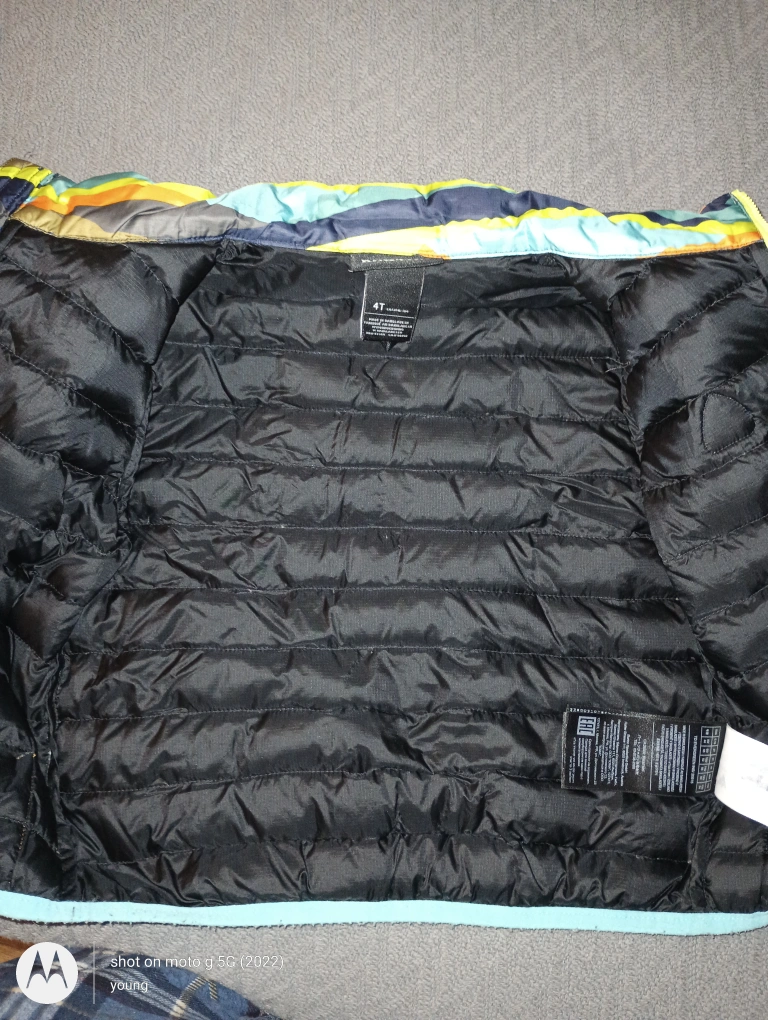 Here's a Burton toddler puffer jacket in size 4T! It's in great condition and perfect for keeping your little one warm and stylish. The jacket features a colourful, eye-catching design and is lightweight and comfortable for everyday wear