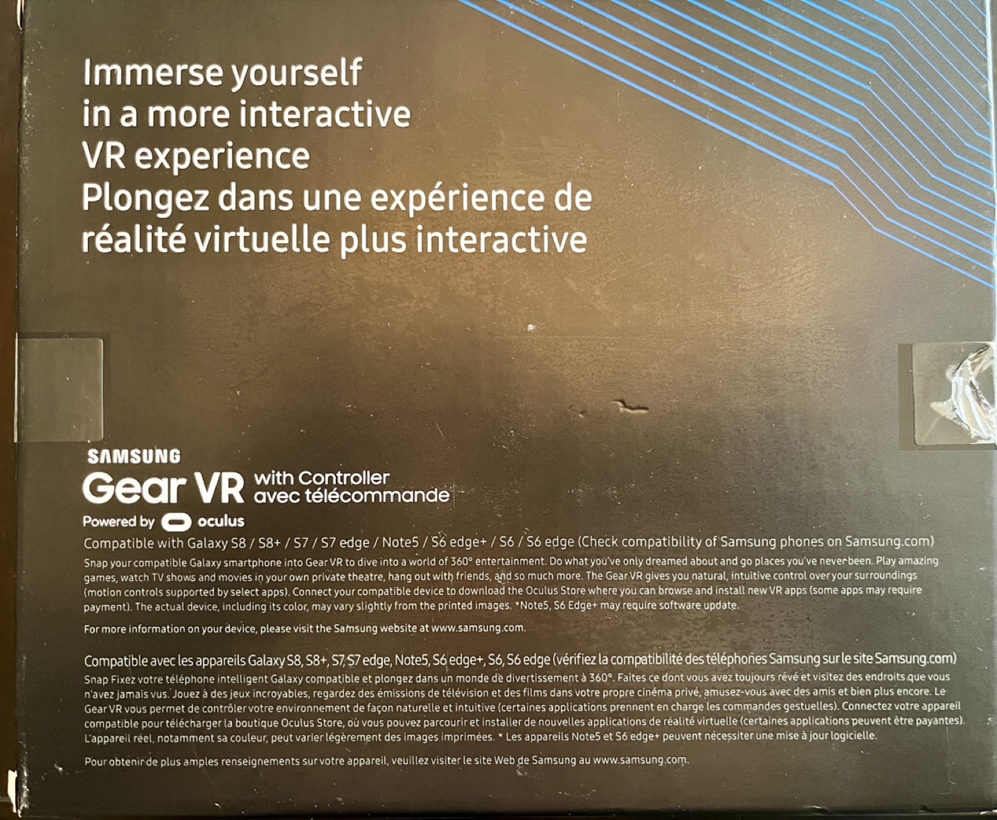 I'm selling a brand new Samsung Gear VR with Controller! It's still in its original box and packaging. Compatible with Galaxy S8 / S8+ / S7 / S7 edge / Note5 / S6 edge+ / S6 / S6 edge