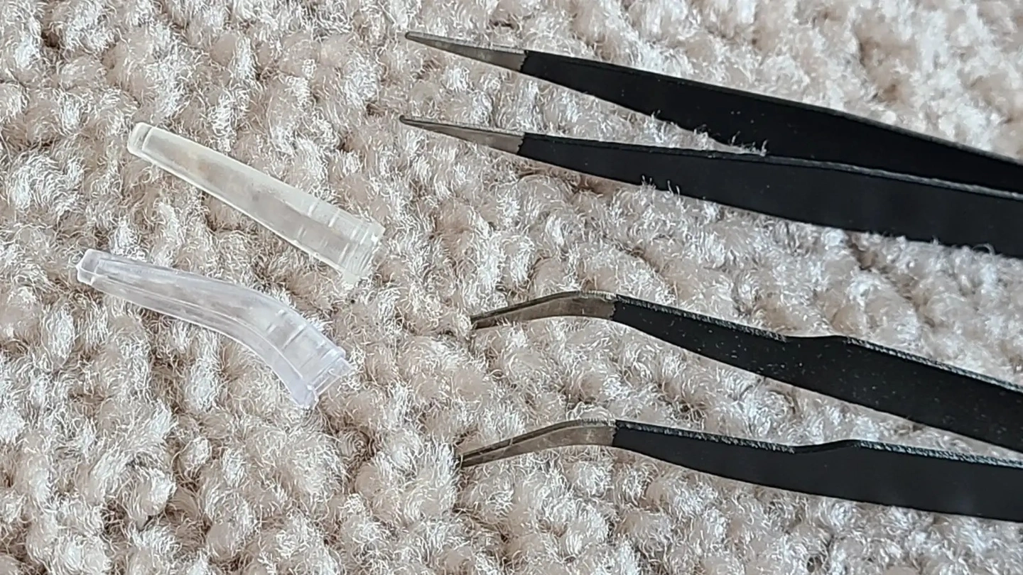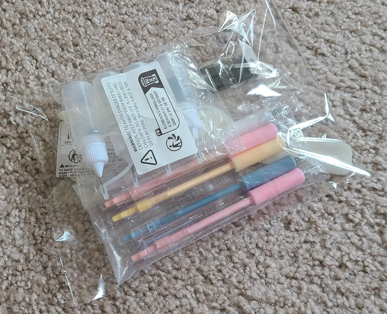 One set of craft tool kit, 13 pieces, including: x5 retractable craft knife x4 0.34oz plastic bottle for glue application x2 straight and curved tips precision tweezers x2 straight and curved folding creasers for paper, cards and faux leather