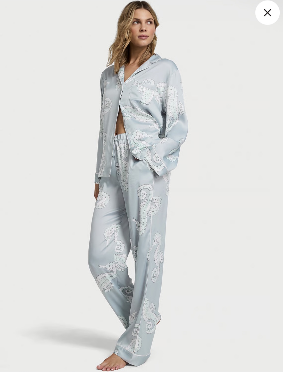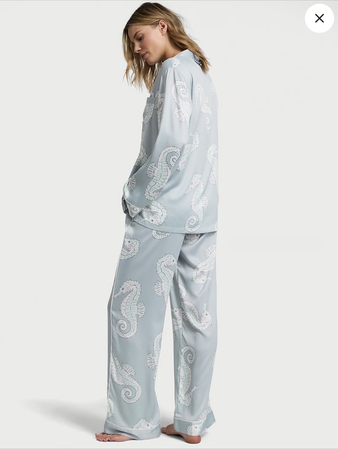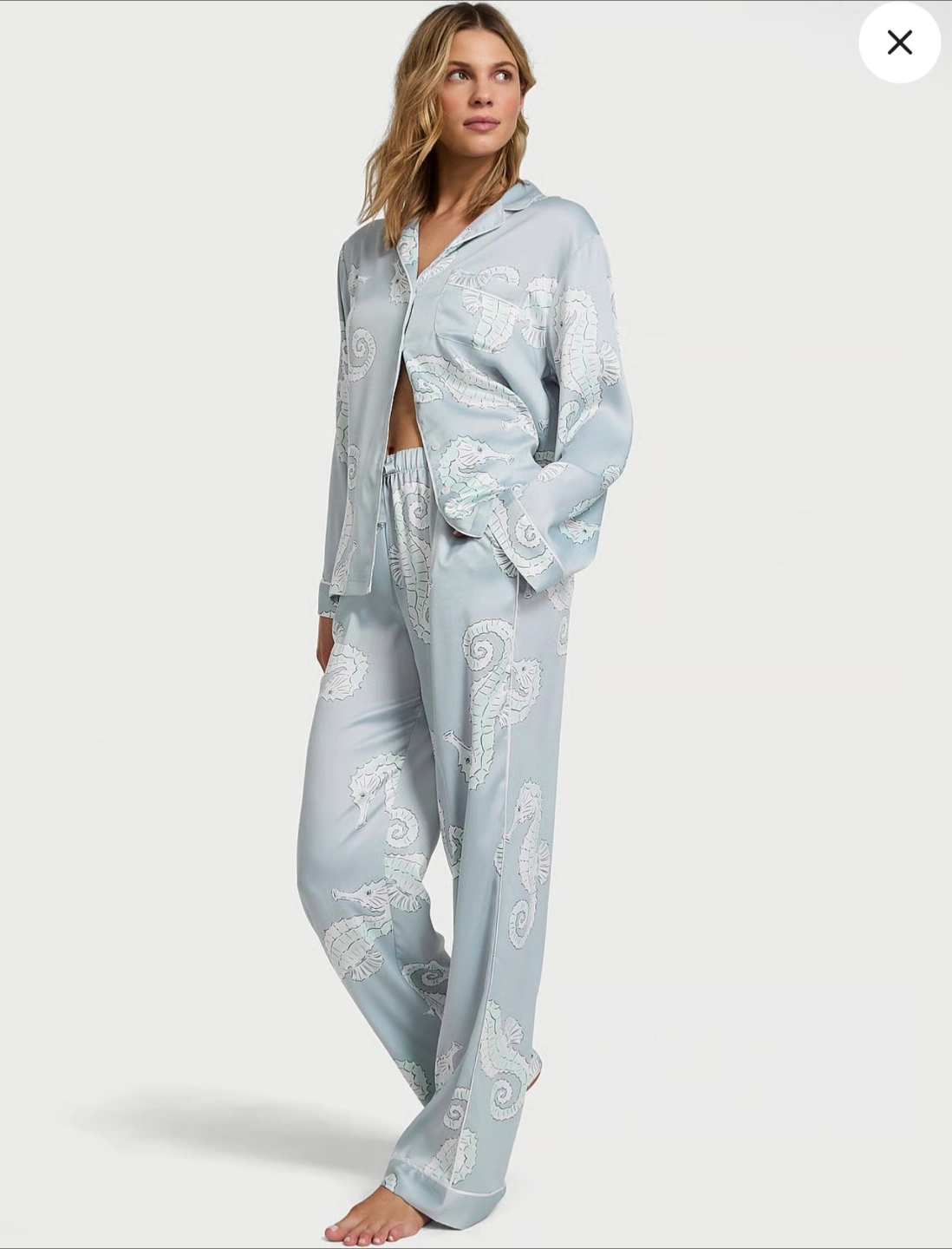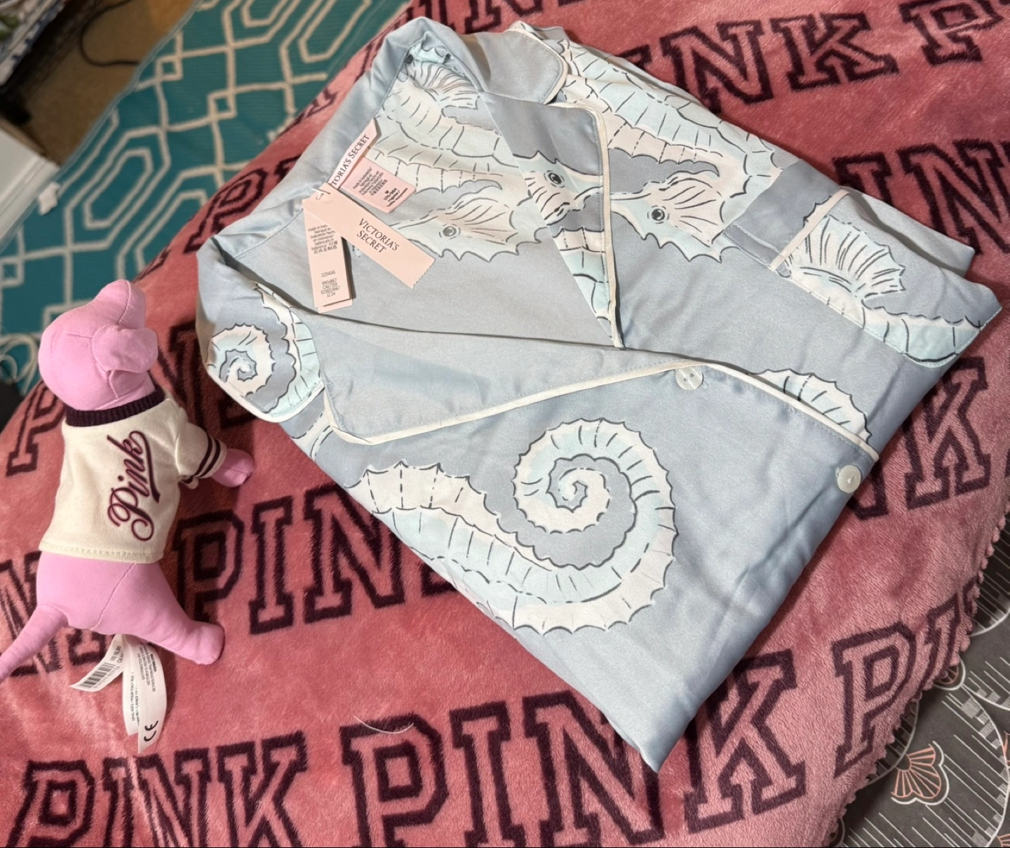 Selling a brand new Victoria's Secret pajama set! The set features a beautiful seahorse pattern on a light blue background. It's in perfect condition with tags still attached, ready for a cozy night's sleep