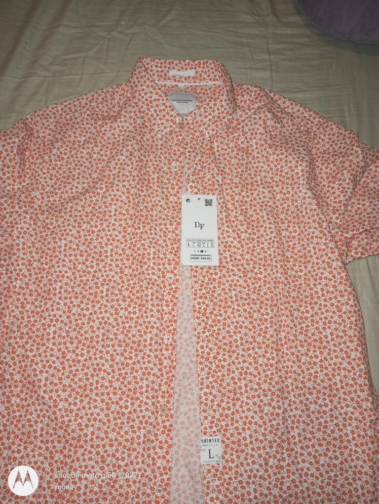 This Denim & Flower shirt is brand new with tags! It's a size large and features a lovely coral floral print. The original price was $44.00. Perfect for adding a pop of colour to your wardrobe!