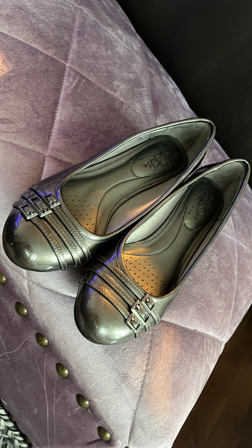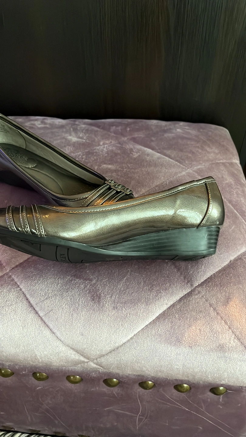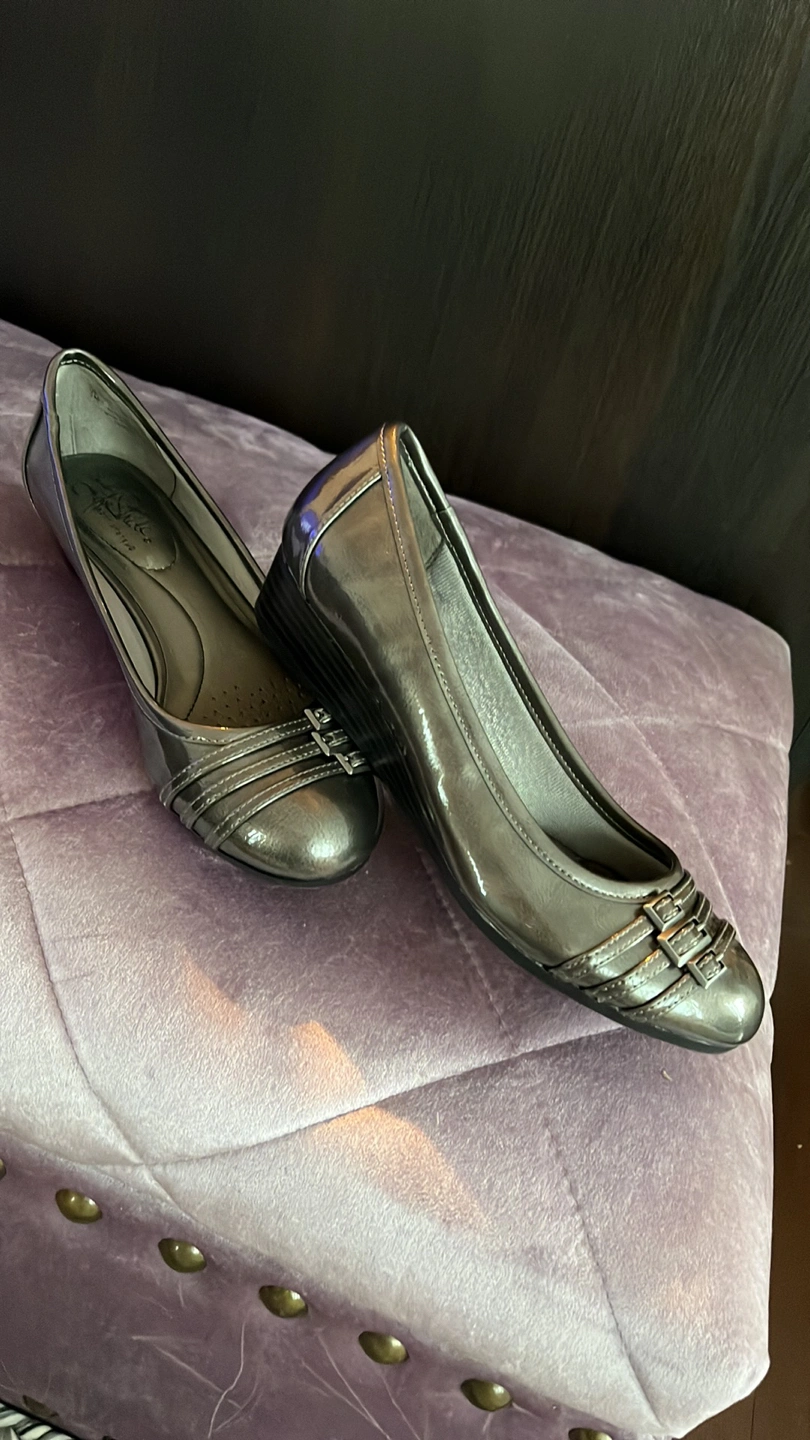 Flattish metallic finish grey pumps, LifeStride brand size 7