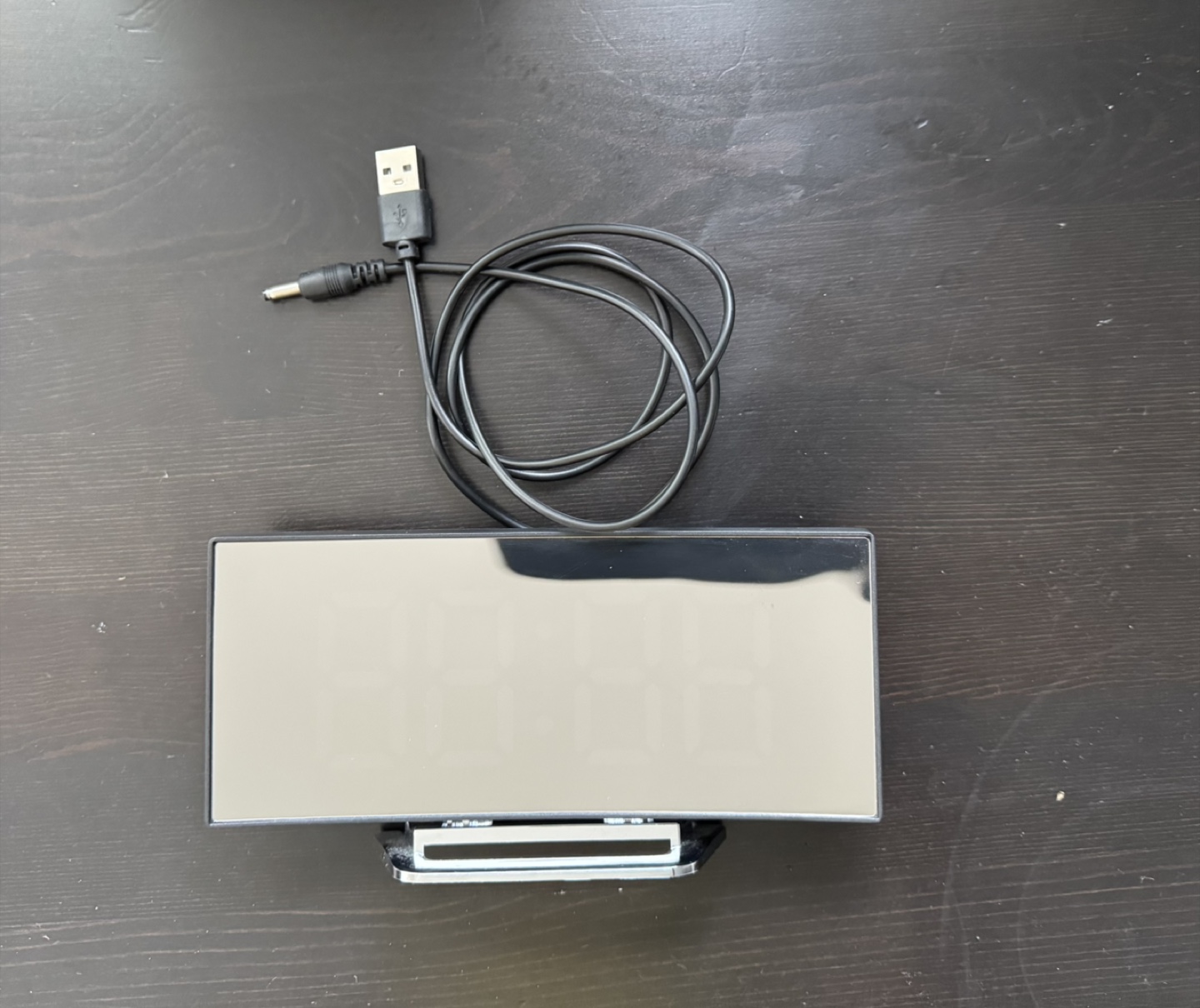 Selling a digital LED mirror alarm clock! It comes with a USB charger cable, and has buttons for setting the time, alarm, and snooze/light. It's in great condition and would look great on any nightstand or desk!