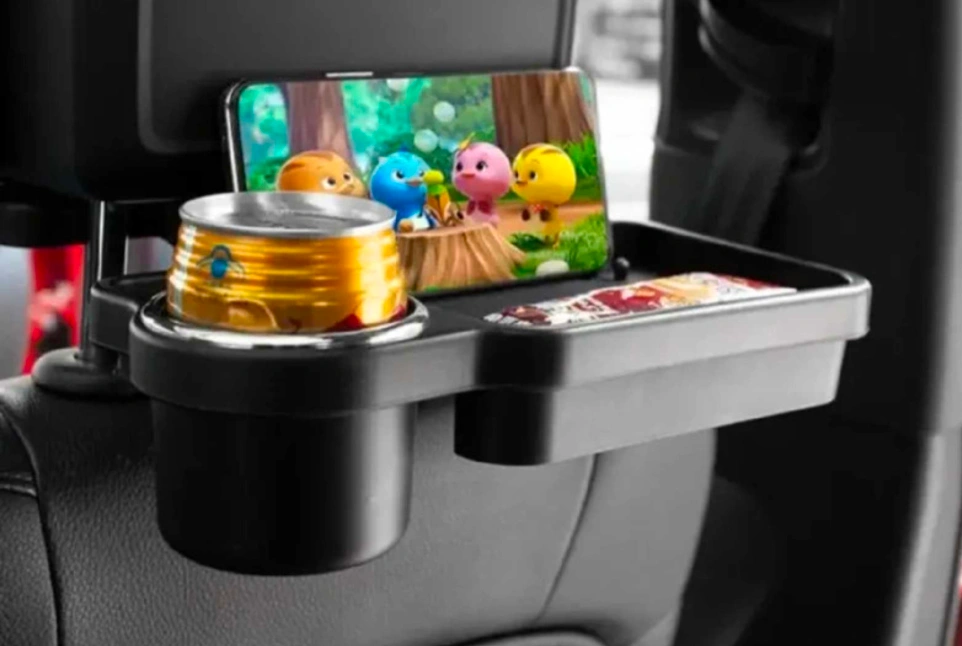 Make road trips more enjoyable with this used car seat organizer tray, designed to hold drinks, snacks, and electronics securely for backseat passengers. This convenient tray attaches easily to the back of most car seats, providing a stable surface and cup holder to keep essentials within reach.