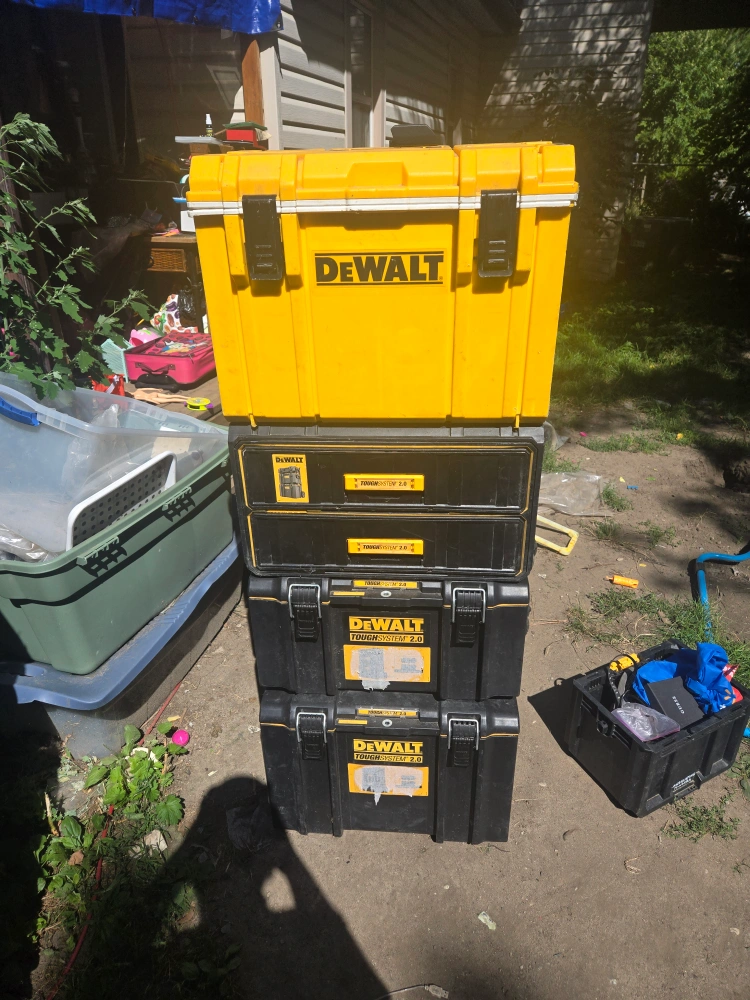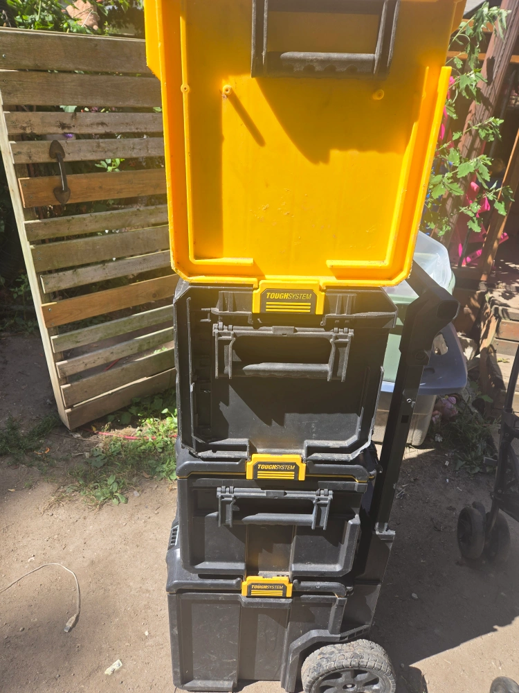 Selling a DeWalt ToughSystem 2.0 tool box! It's in good condition and ready to help you organize your tools. This modular system is perfect for keeping everything in its place and easily transportable. Great for any job site or DIY project
