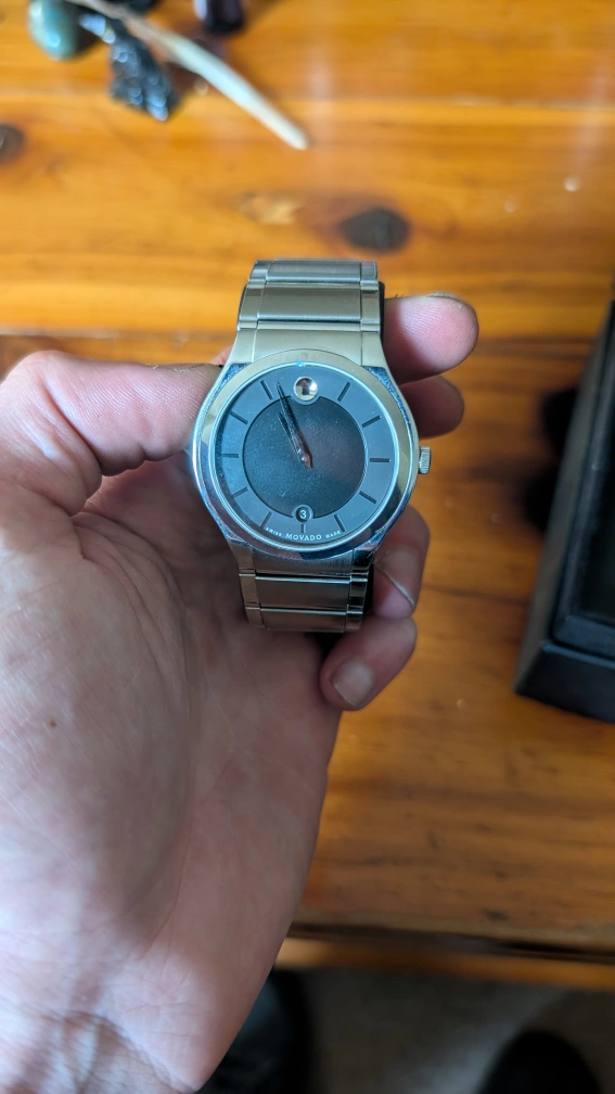 339Selling a Movado men's watch in stainless steel. It comes with the original box, operating instructions, warranty and service guide, and an extra watch band link. A stylish timepiece for any occasion!