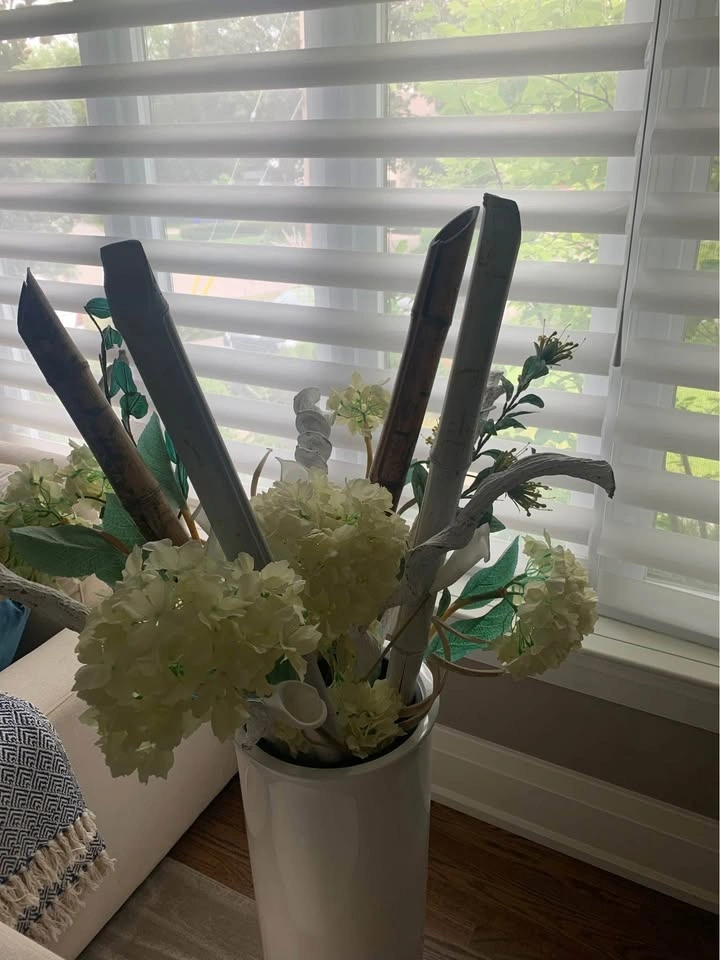 Add a touch of elegance to your space with this lovely decorative white floor vase featuring an artistic floral / branch arrangement, standing approximately 31 1/2” tall. This decorative piece is in good condition, ready to enhance the ambiance of any room. Here are the details: * Colour: White * Size: 31.5 inches tall * Condition: Used - Good This piece is being offered at a fair price, reflecting its style and current condition. If the ad is up, it's available!