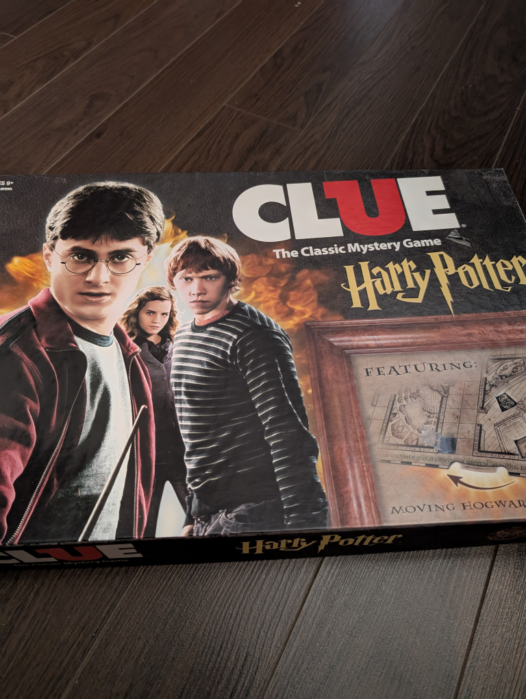 Selling the Harry Potter edition of Clue! It's the classic mystery game with a magical twist, featuring moving Hogwarts. Perfect for Harry Potter fans and board game enthusiasts alike