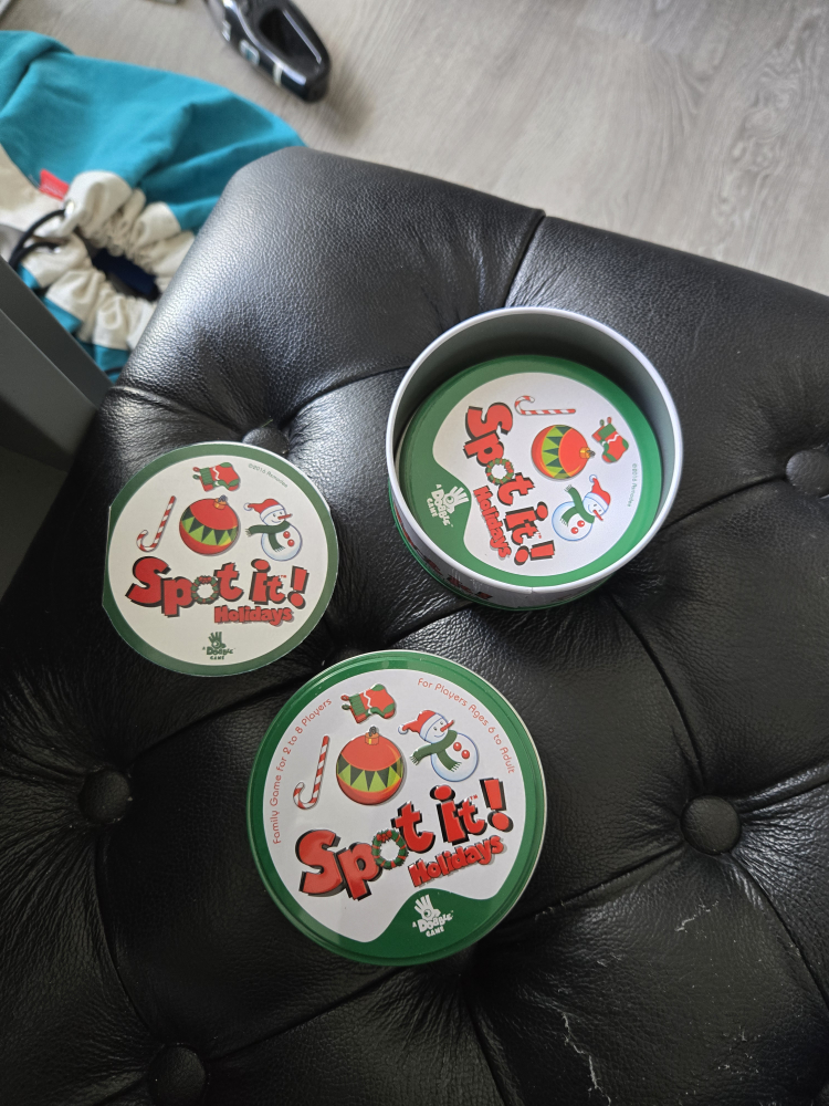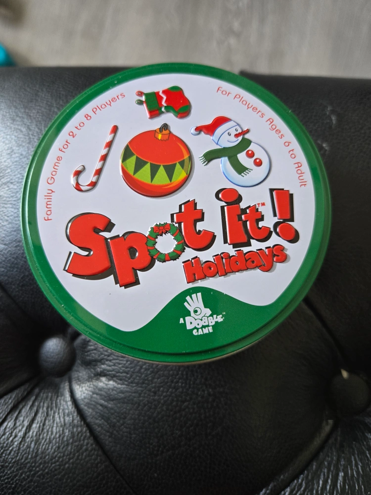Spot It! Holidays is a fun family game for 2 to 8 players, recommended for ages 6 to adult! It's a Dobble game that's great for the holidays and can be enjoyed by the whole family