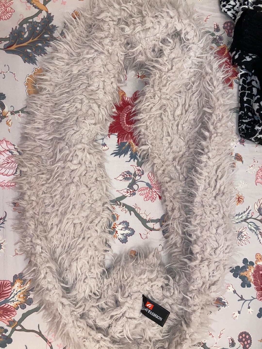 White Faux Fur Scarf and patterned scarf