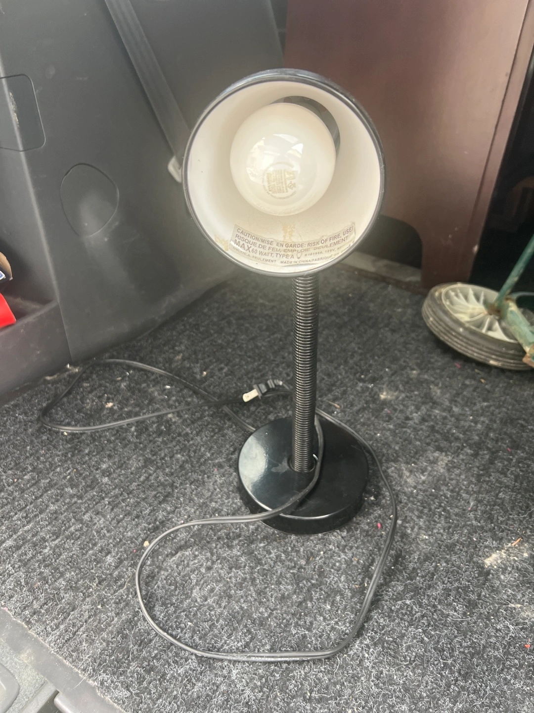 337Selling a simple black desk lamp. It uses a max 60 watt bulb, type A. Made in China