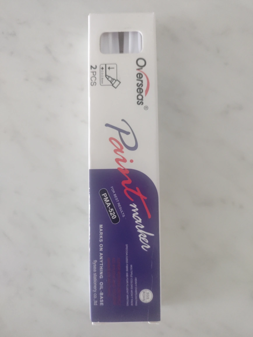 Selling a pack of two Overseas paint markers! These are oil-based and can mark on pretty much anything. The model is PMA-520 and they have a specialized fibre nib for fluent writing. Perfect for all your crafting needs!