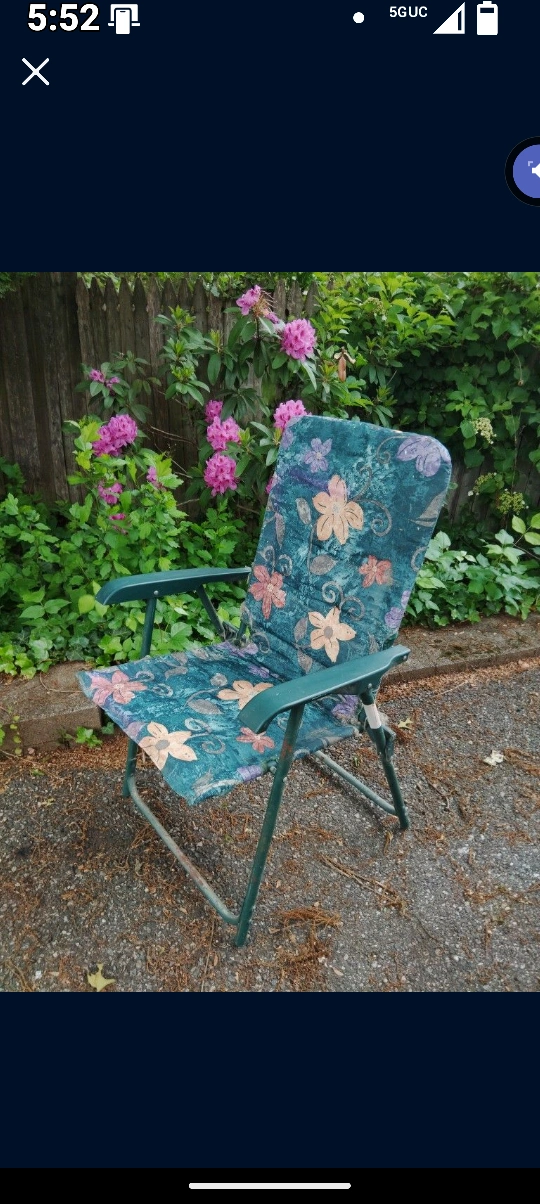 Selling a folding camp chair with a floral pattern. It's perfect for outdoor events, camping, or just relaxing in your backyard. The chair is lightweight and easy to carry, making it convenient for any adventure! I have 3 available.