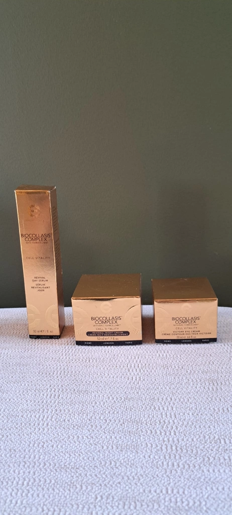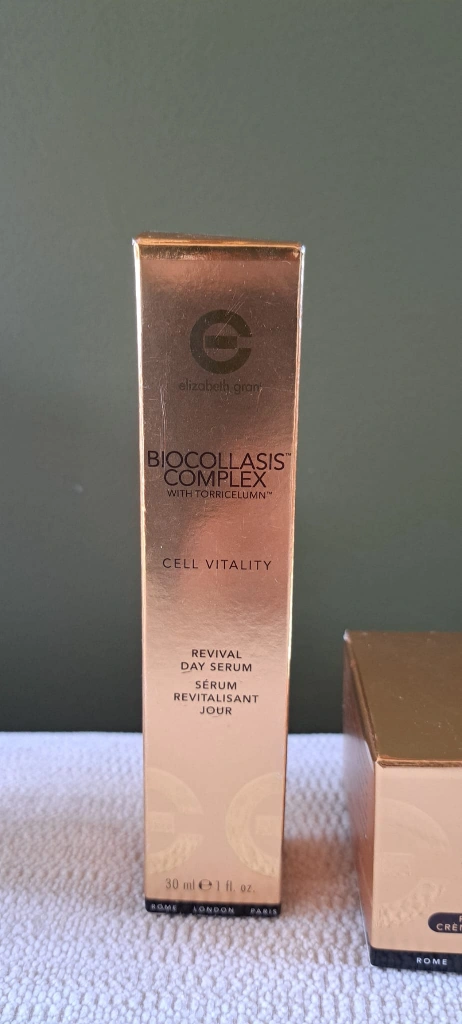 20I'm selling Elizabeth Grant Biocollasis Complex Cell Vitality products. Included are the Revival Day Serum (30ml), Renewing Night Cream (50ml), and Victory Eye Cream (20ml)