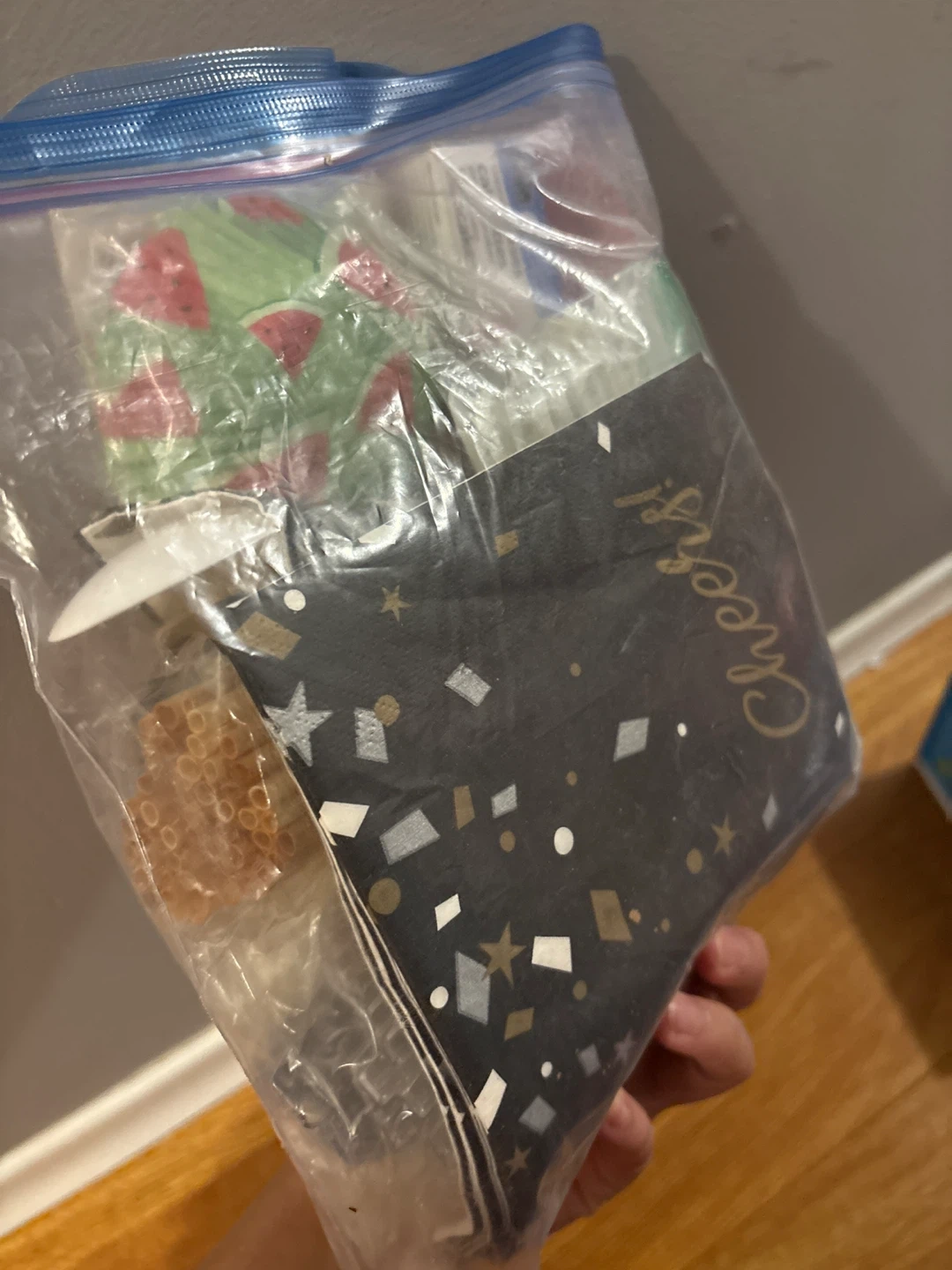 I'm offering a bundle of party supplies, perfect for your next celebration! The bundle includes napkins with fun designs, wooden cutlery, and colourful straws. Everything you need to make your party a success!