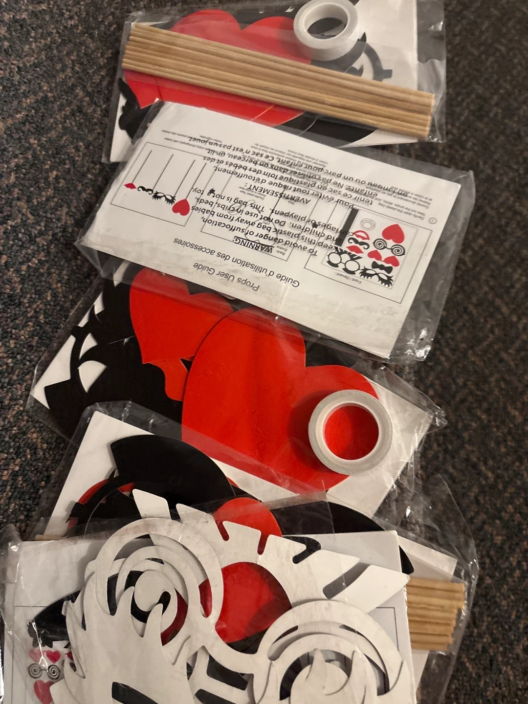 254I have a brand new set of photo booth props still sealed in the original packaging. It includes various shapes and designs, perfect for adding some fun to your next event or party! Comes with wooden sticks and tape for easy assembly Good