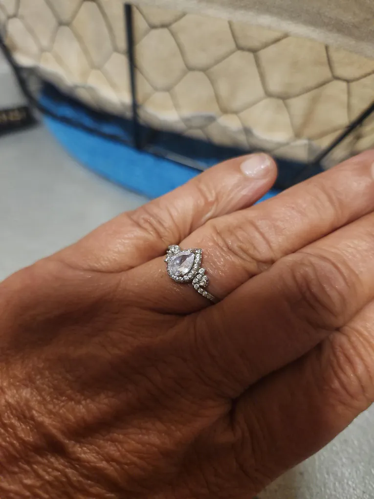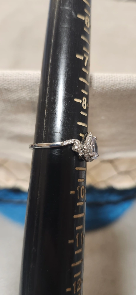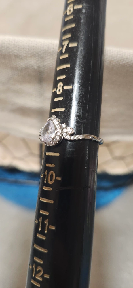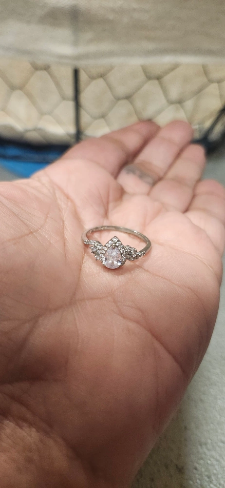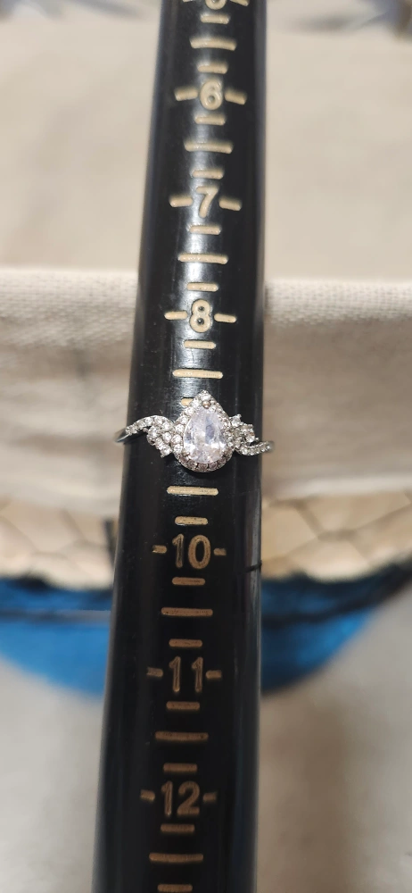 Selling a ring in size 9. It has a teardrop shaped stone surrounded by smaller cubuc zirconia stones. It's is brand new without tags, ready for a new home.