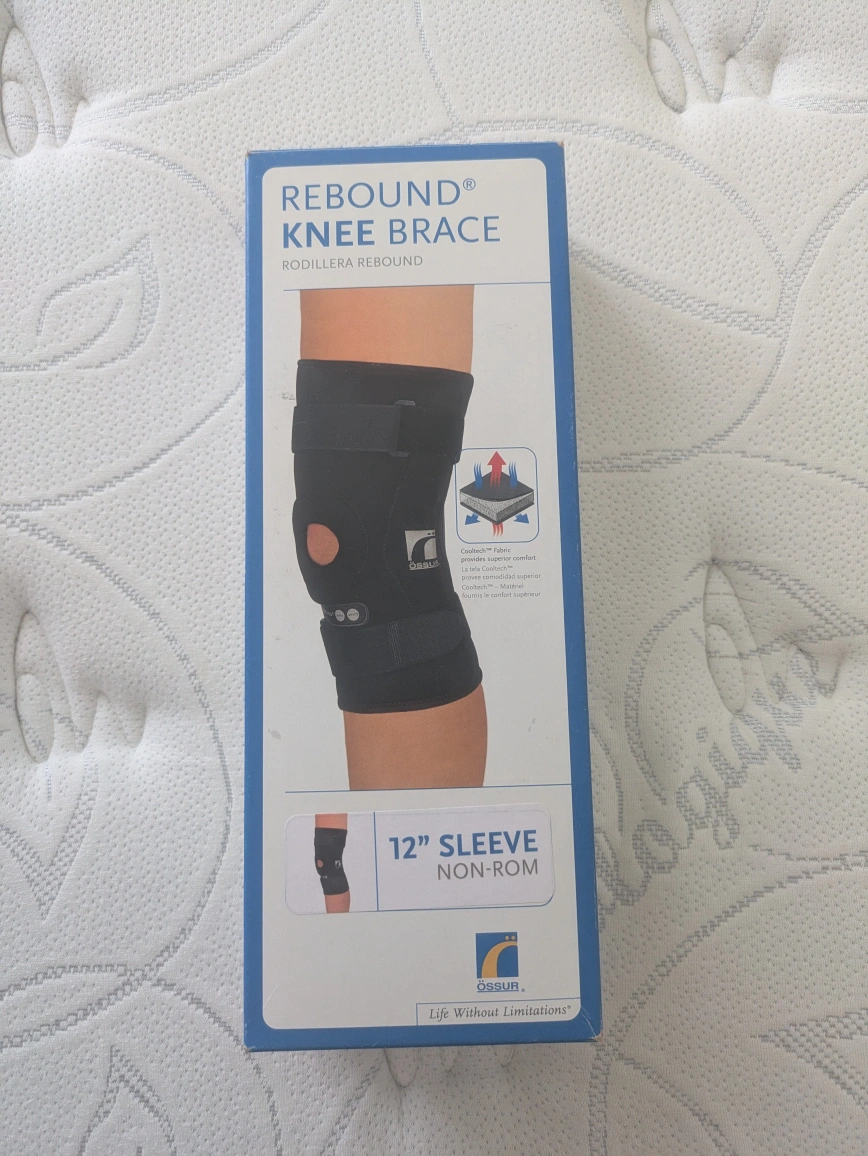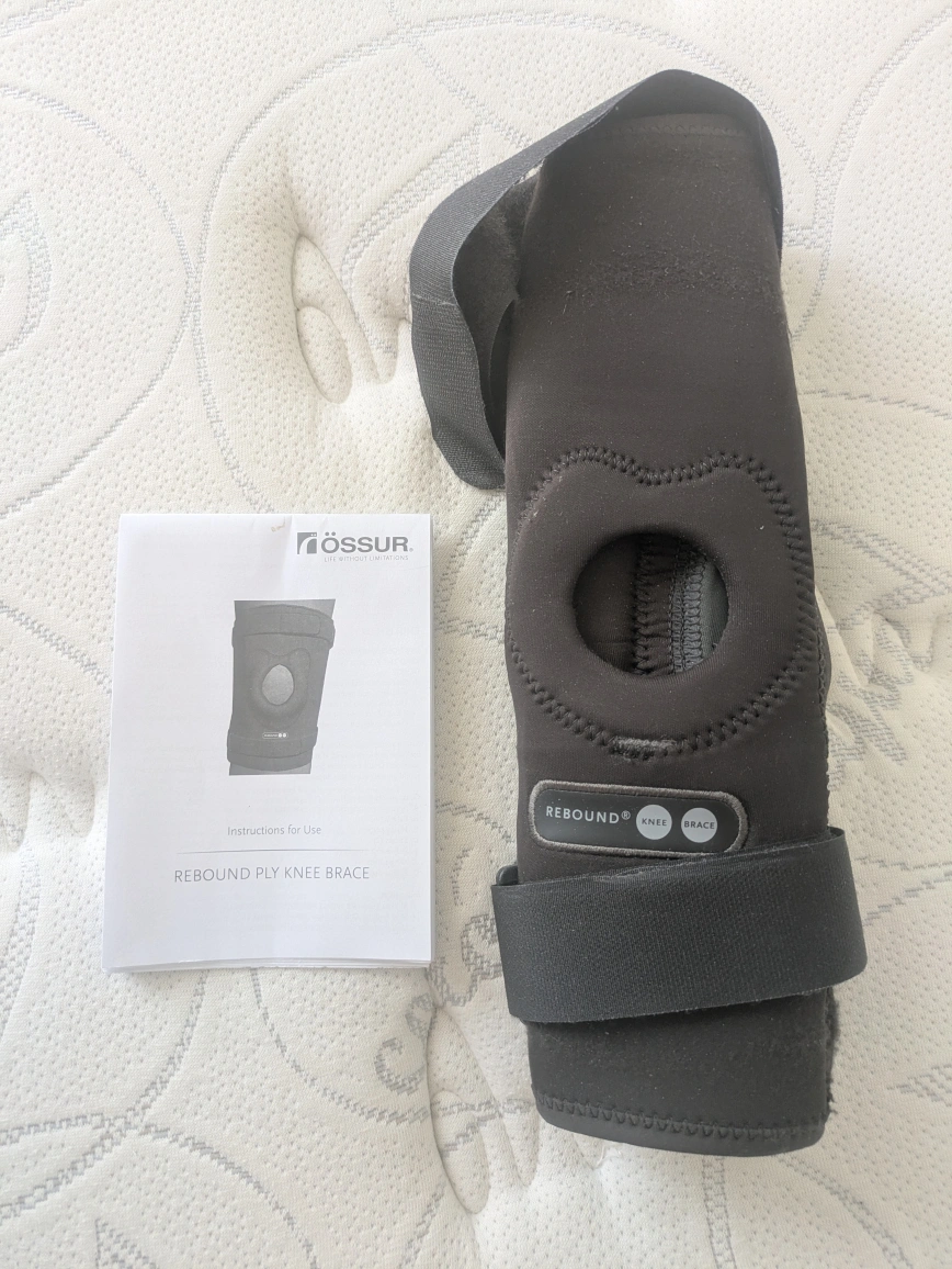 Selling an Össur Rebound Knee Brace with a 12" sleeve. This brace is designed for comfort and support, featuring a comfortable fabric. It also comes with the original instructions for use.