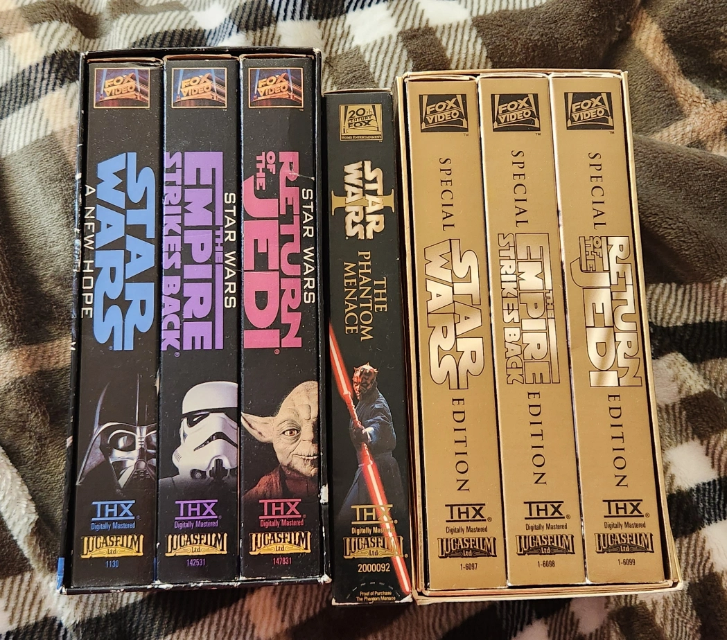 Star Wars Special Editon on VHS. in watched condition original releases 1995, 1997 and 1999. these are great for the Star Wars collectable fan. Asking $65.00 for the 7 vhs tapes in AS IS condition.