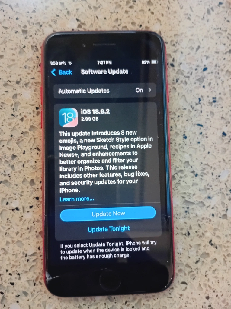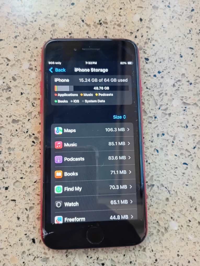 Selling a red iPhone SE. The battery health is at 72%. There are some cracks on the screen. It is running iOS 18.6.2. got an Small cracked at the left bottom screen but doesn't affect anything pick up downtown Toronto cash only I don't hold so sorry just phone nothing else thanks