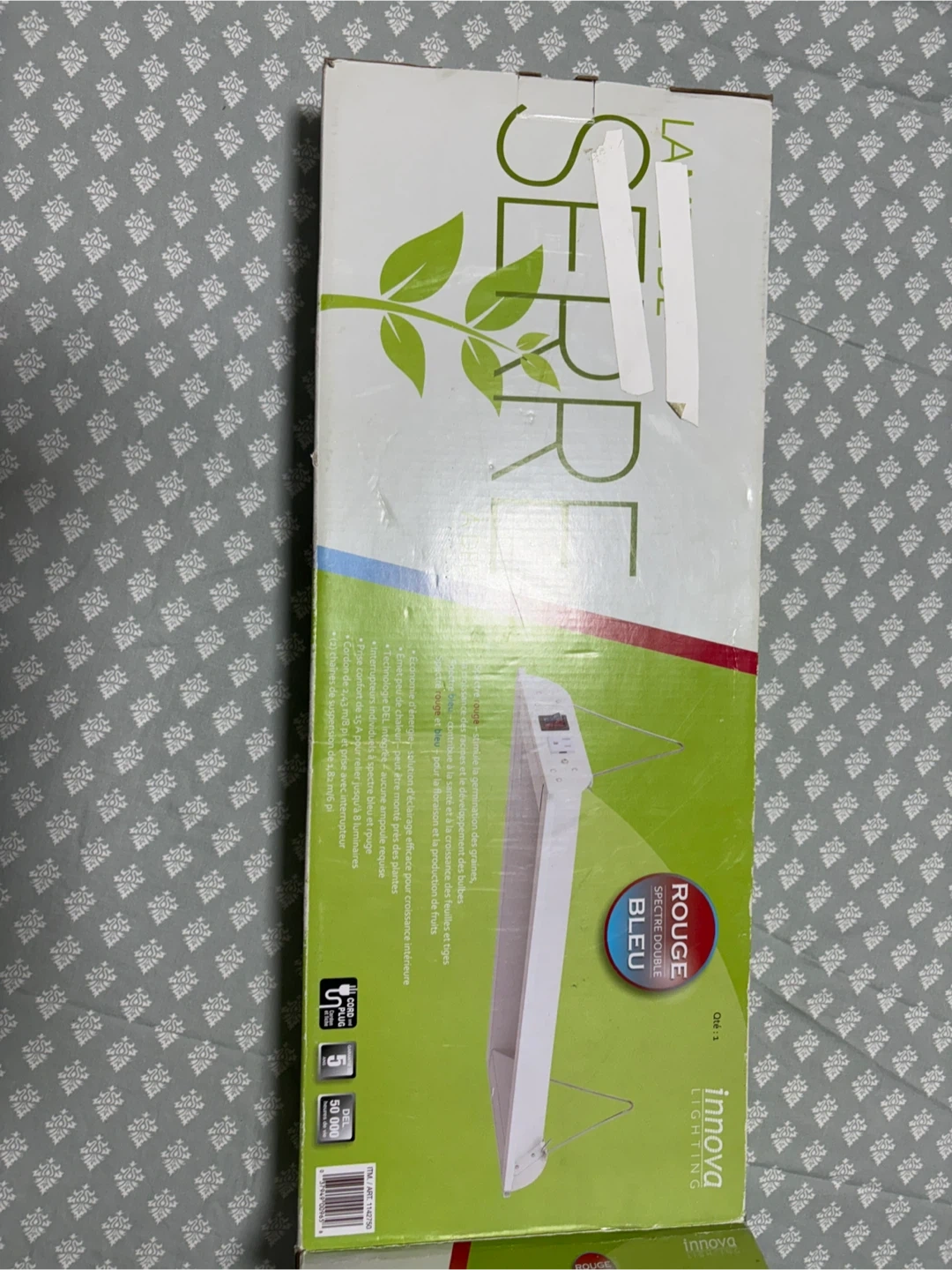 This is an Innova Lighting grow light with dual red and blue spectrum. It's designed for seedling germination, bulb development, and flowering. The light emits little heat and comes with individual red and blue spectrum switches. A 15A comfort plug allows connection of up to 8 units.