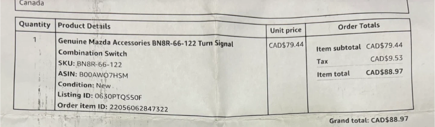 Genuine Mazda BN8R-66-122 Turn Signal Combination Switch