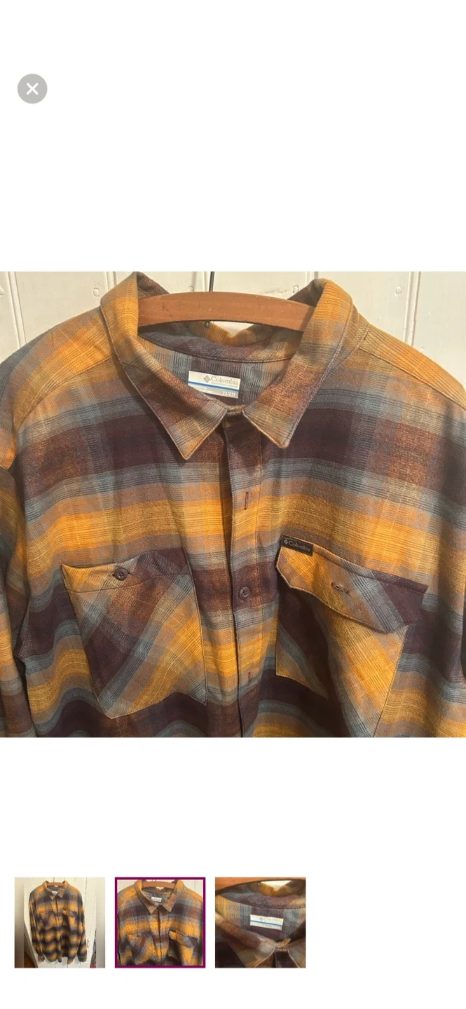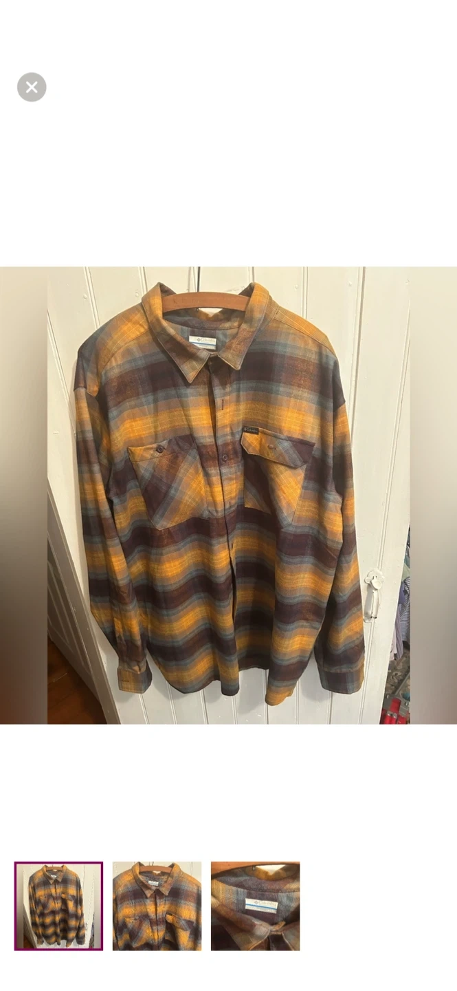 Columbia brand. Long sleeve button up flannel. Brown, orange & blue floral plaid. Size men’s 2x. Brand new condition