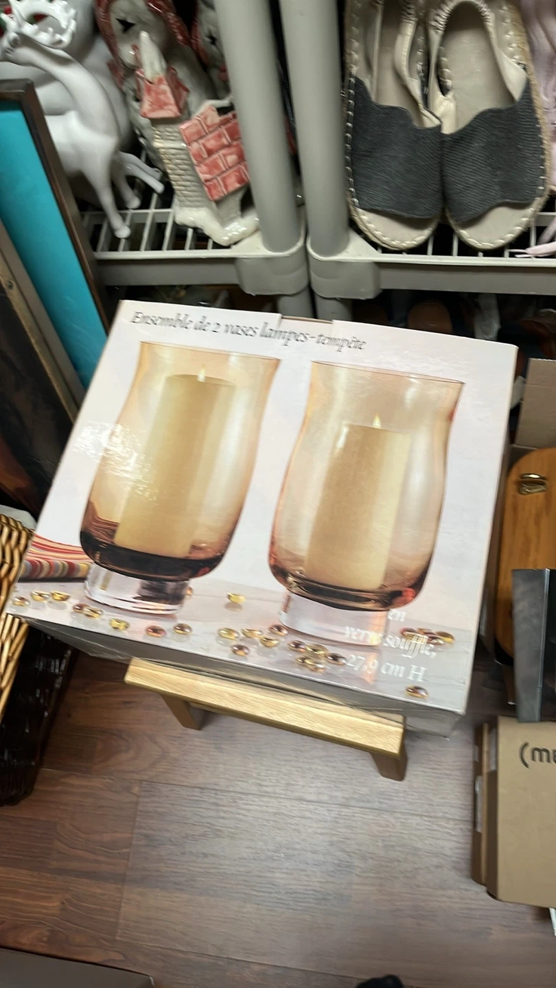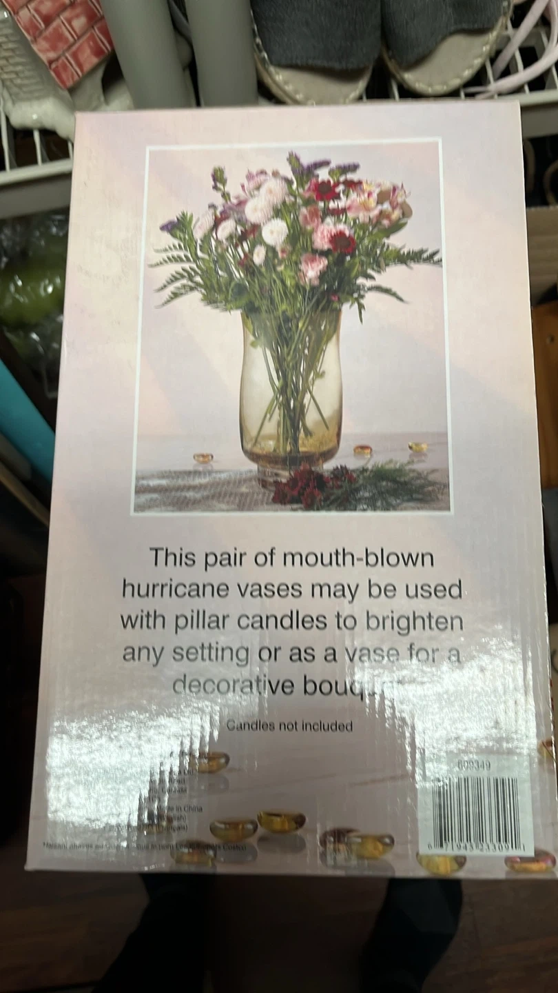 This pair of mouth-blown hurricane vases may be used with pillar candles to brighten any setting or as a vase for a decorative bouquet. They're made of glass. Candles not included.