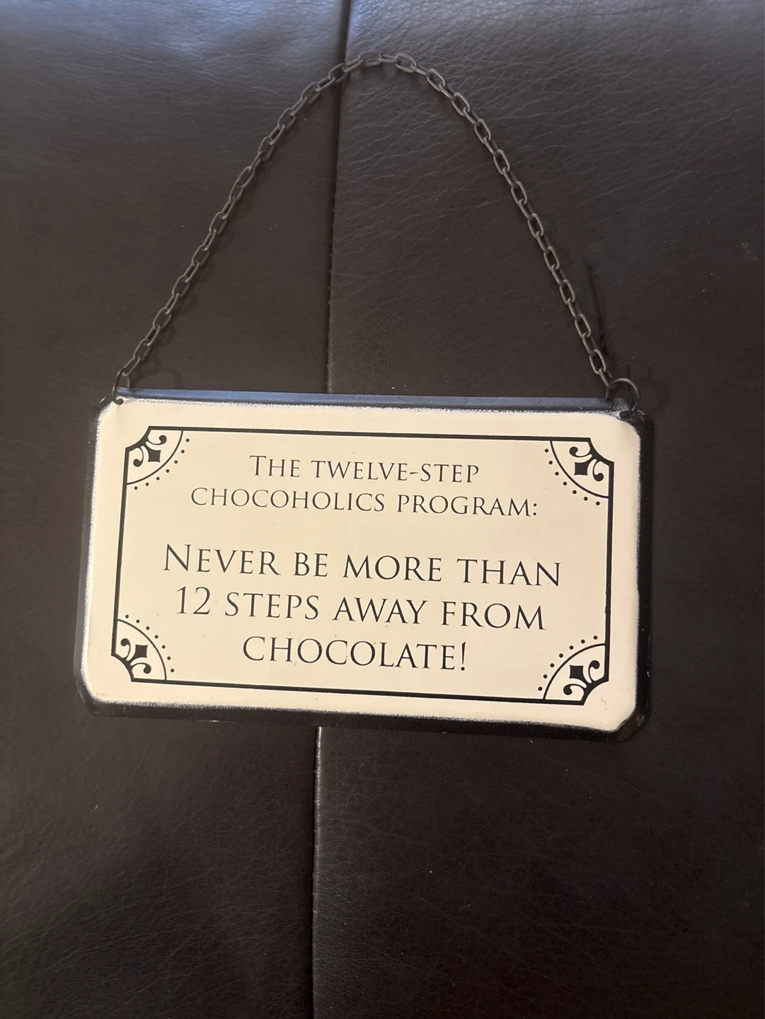 This decorative sign is for the twelve-step chocoholics program. It's well