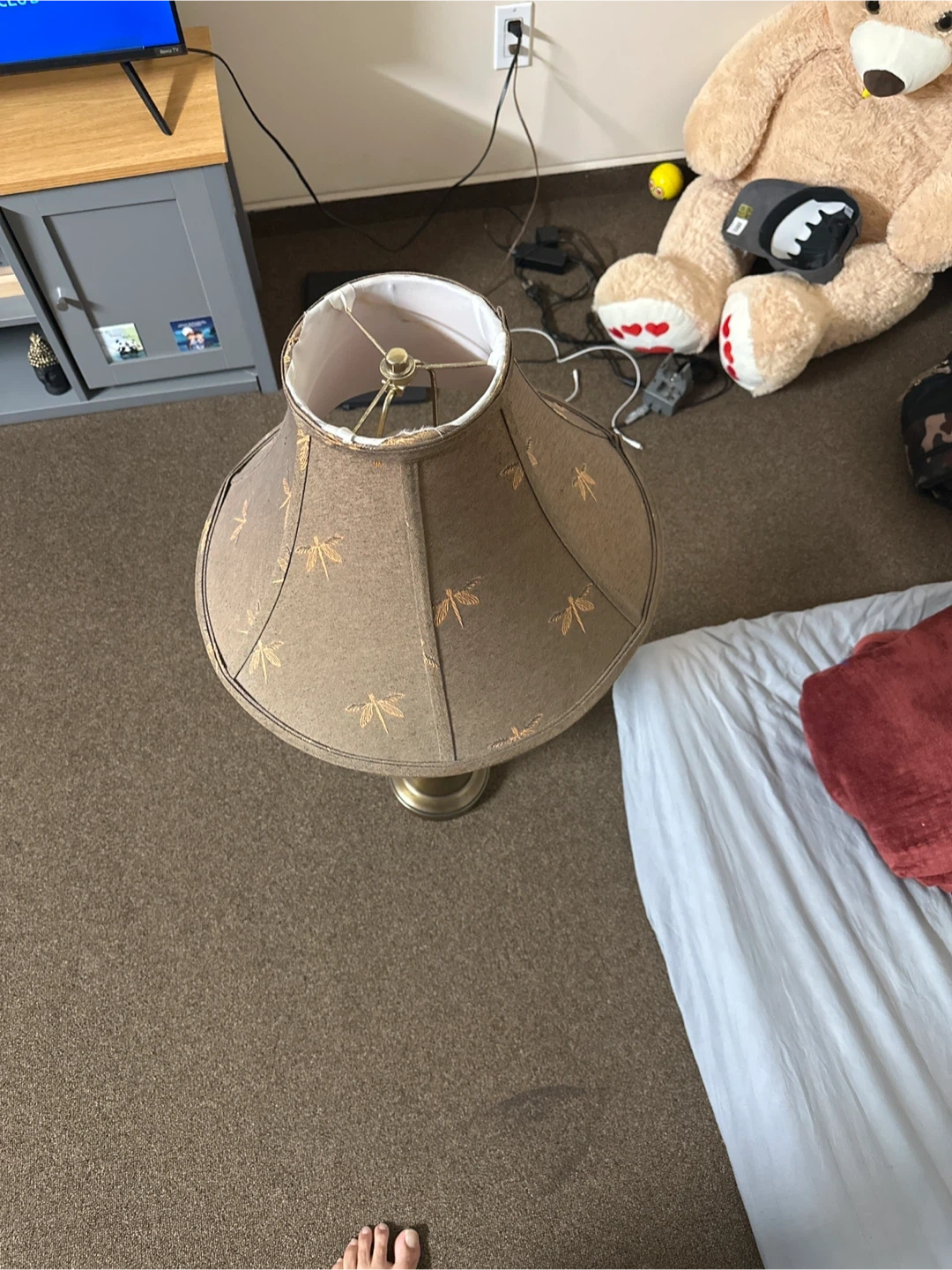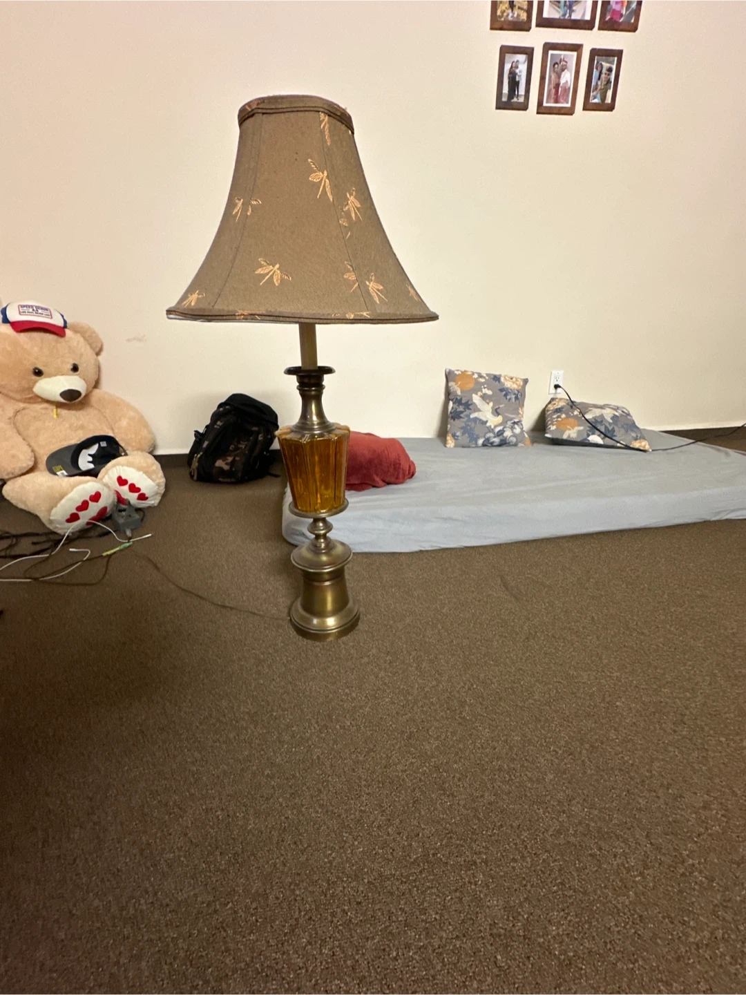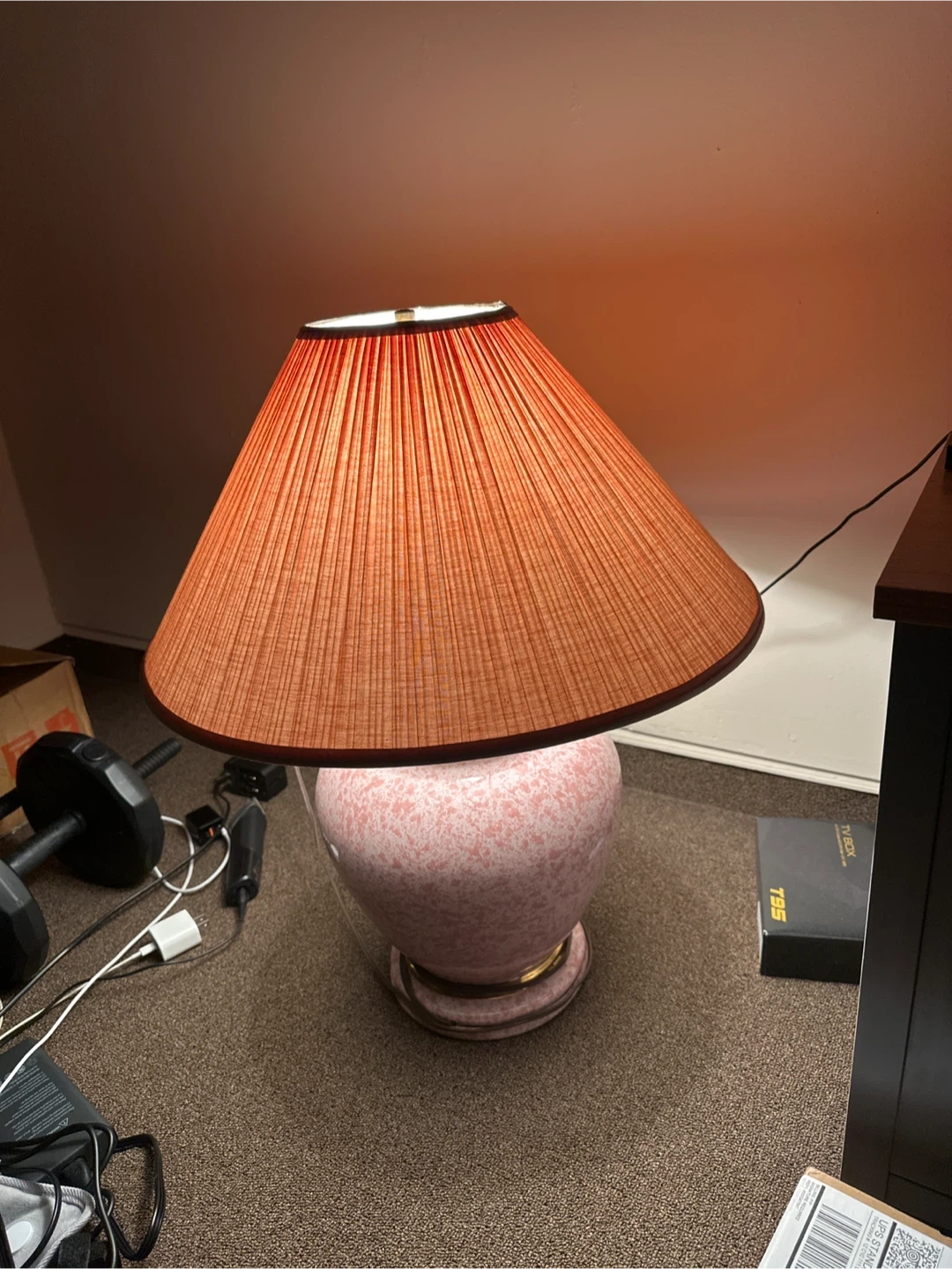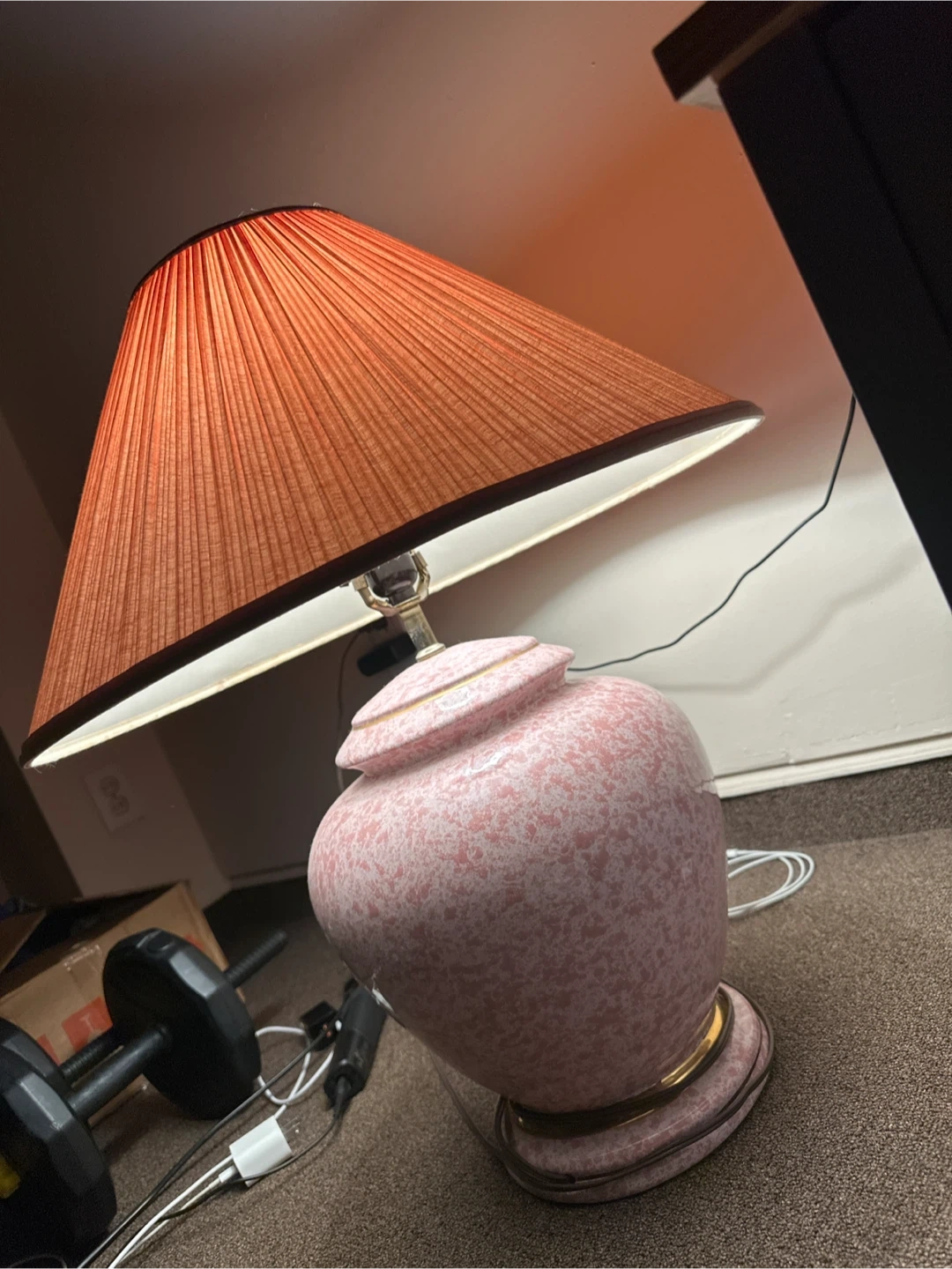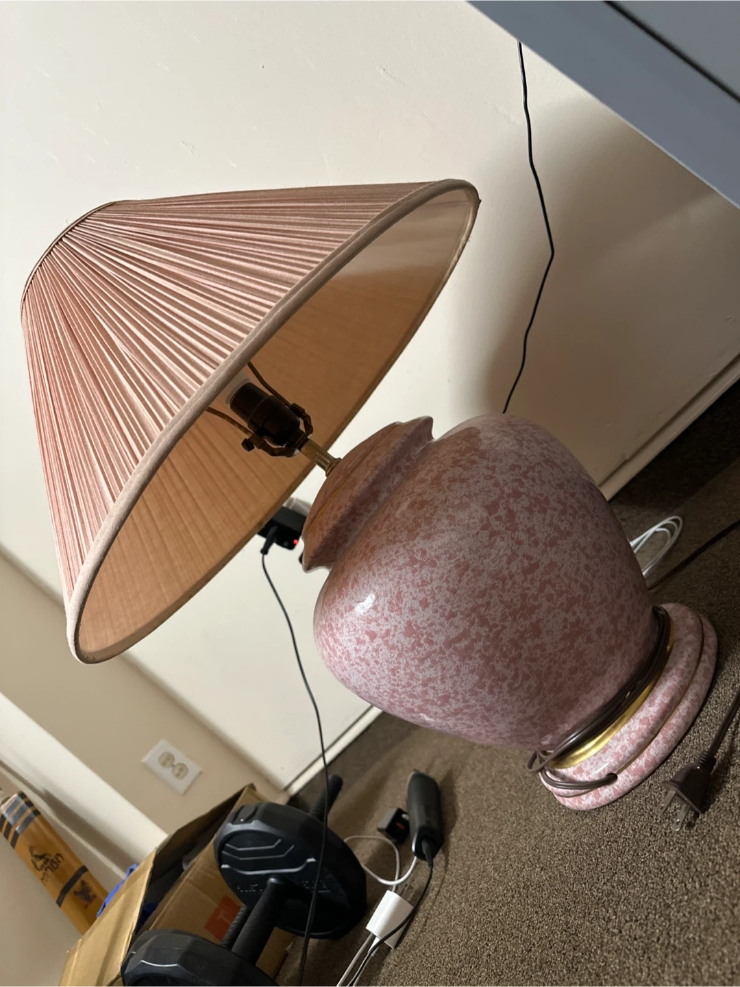 Selling a vintage-style table lamp with a unique design. The lamp features a gold-toned base and a patterned lampshade. It's a great addition to any room!