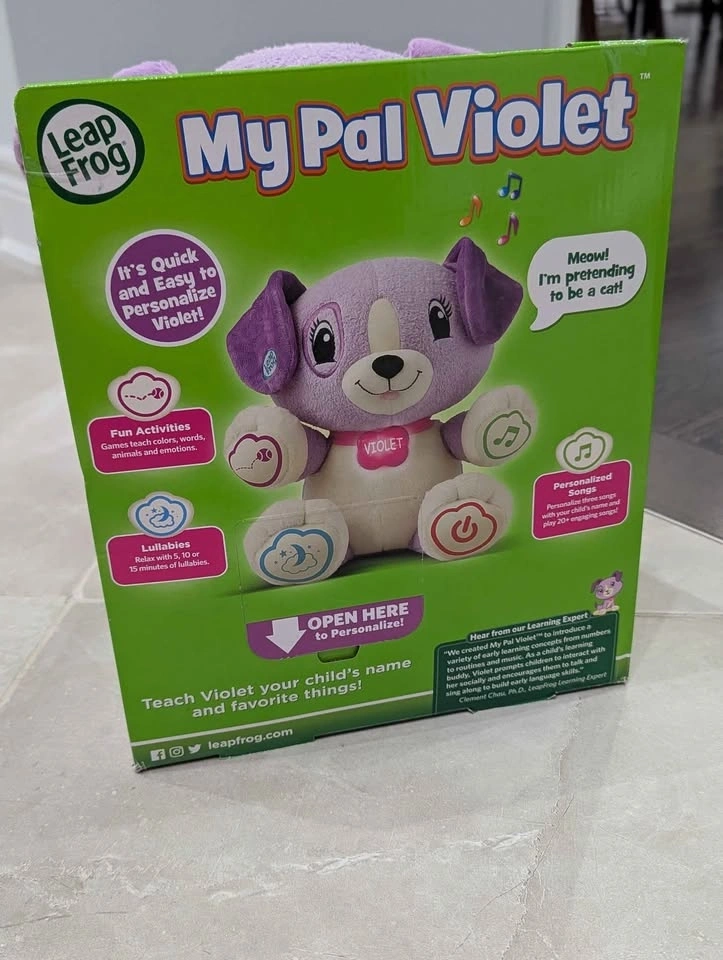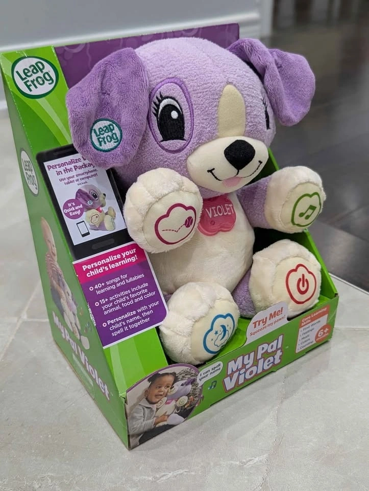 New LeapFrog My Pal Violet (English Version). New in box. Pickup in Nobleton. Teach Violet your child’s name and favorite things for personalized learning across more than 15 activities. Listen along to 40+ learning songs, melodies and lullabies for active daytime fun and nighttime soothing. This learning toy introduces first words, feelings and emotions, colors, and counting. Connect Violet to your smartphone, tablet or computer for easy personalization.
