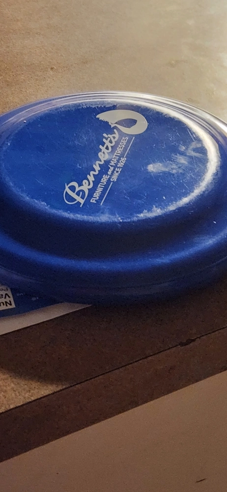 Here's a blue plate from Bennett's Furniture & Mattresses. It's in good condition and ready for a new home!